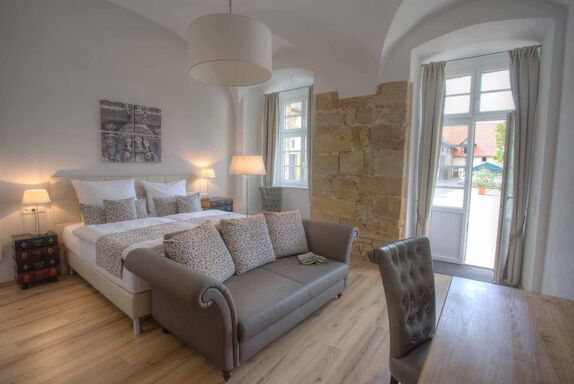 Ökonomiehof - Ferienwohnung Kloster Suite mit Regendusche und zwei Terrassen