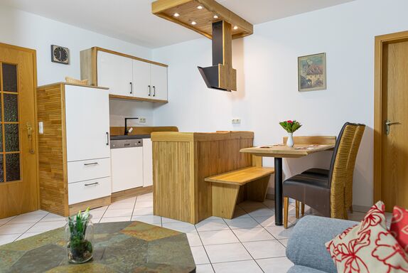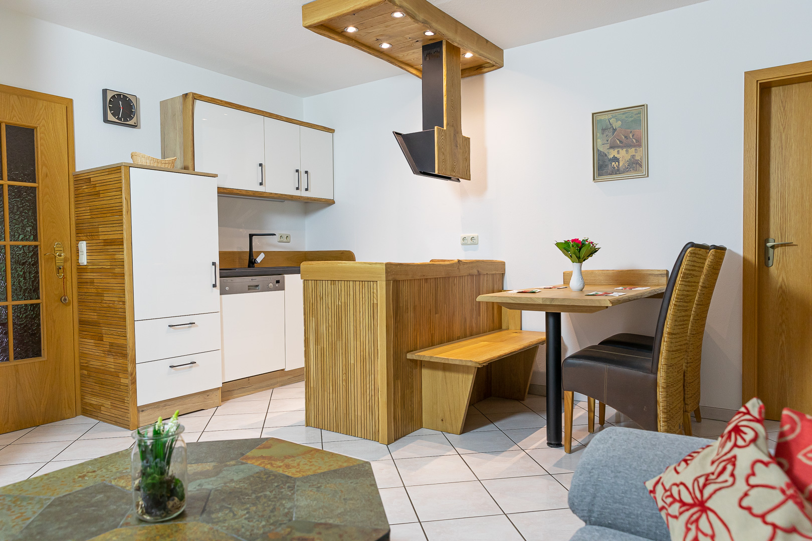Die Ferienwohnung Fichtenschlag mit 40qm bietet Platz für bis zu 3 Personen. Sie entält eine Wohnküche mit Kaffeemaschine, Toaster; Elektroherd und Spülmaschine, außerdem ein Sofa, eine Essecke und einen Fernseher. IM schlafzimmer ist ein Doppelbett und das Badezimmer ist mit Dusche und WC ausgestattet. Die Terassentür führt auf die überdachte Terasse direkt in den Garten. Besonders im Sommer ist diese Wohnung zu empfehlen. Durch die nähe des Waldes bleibt diese schön kühl.