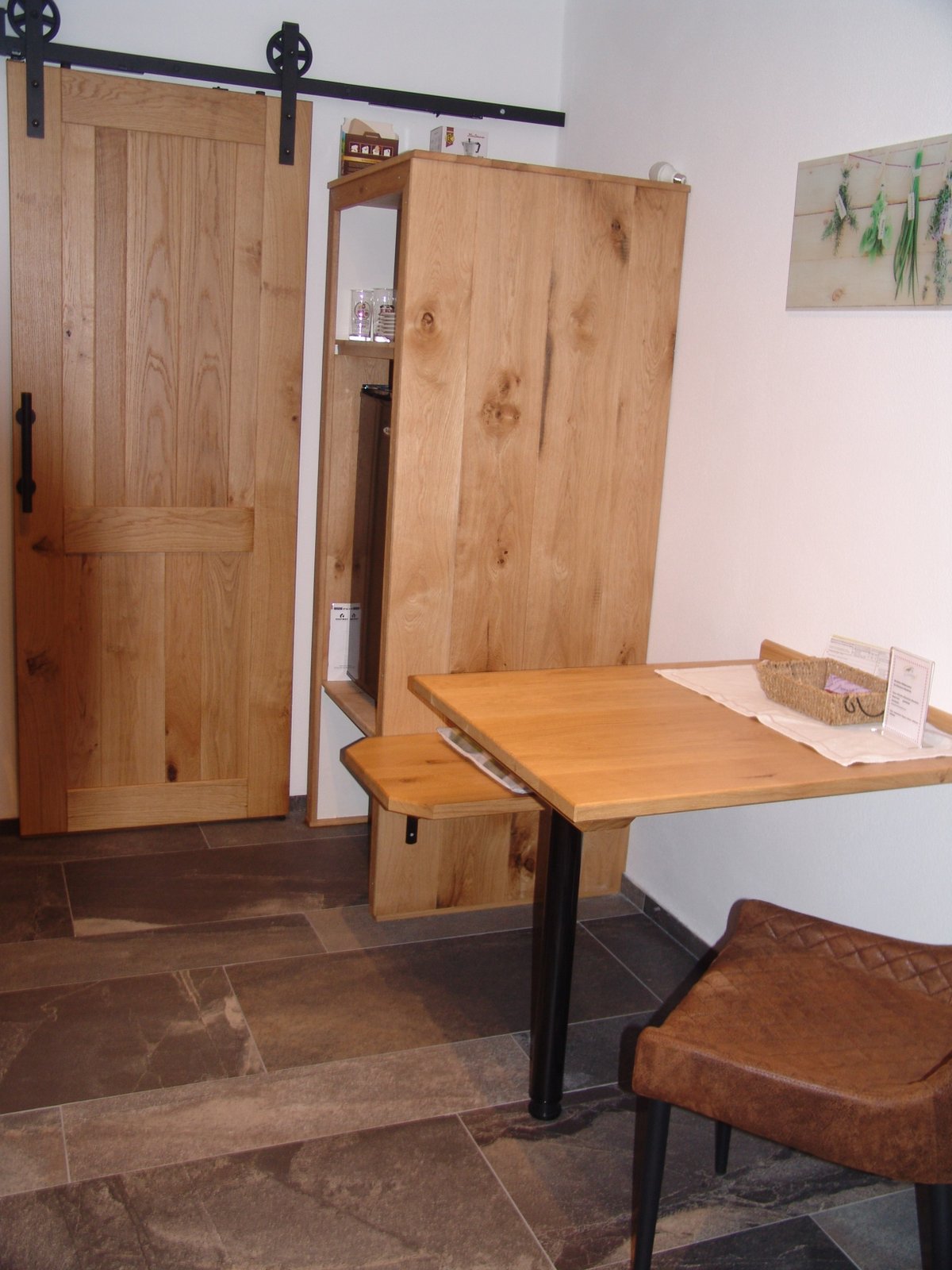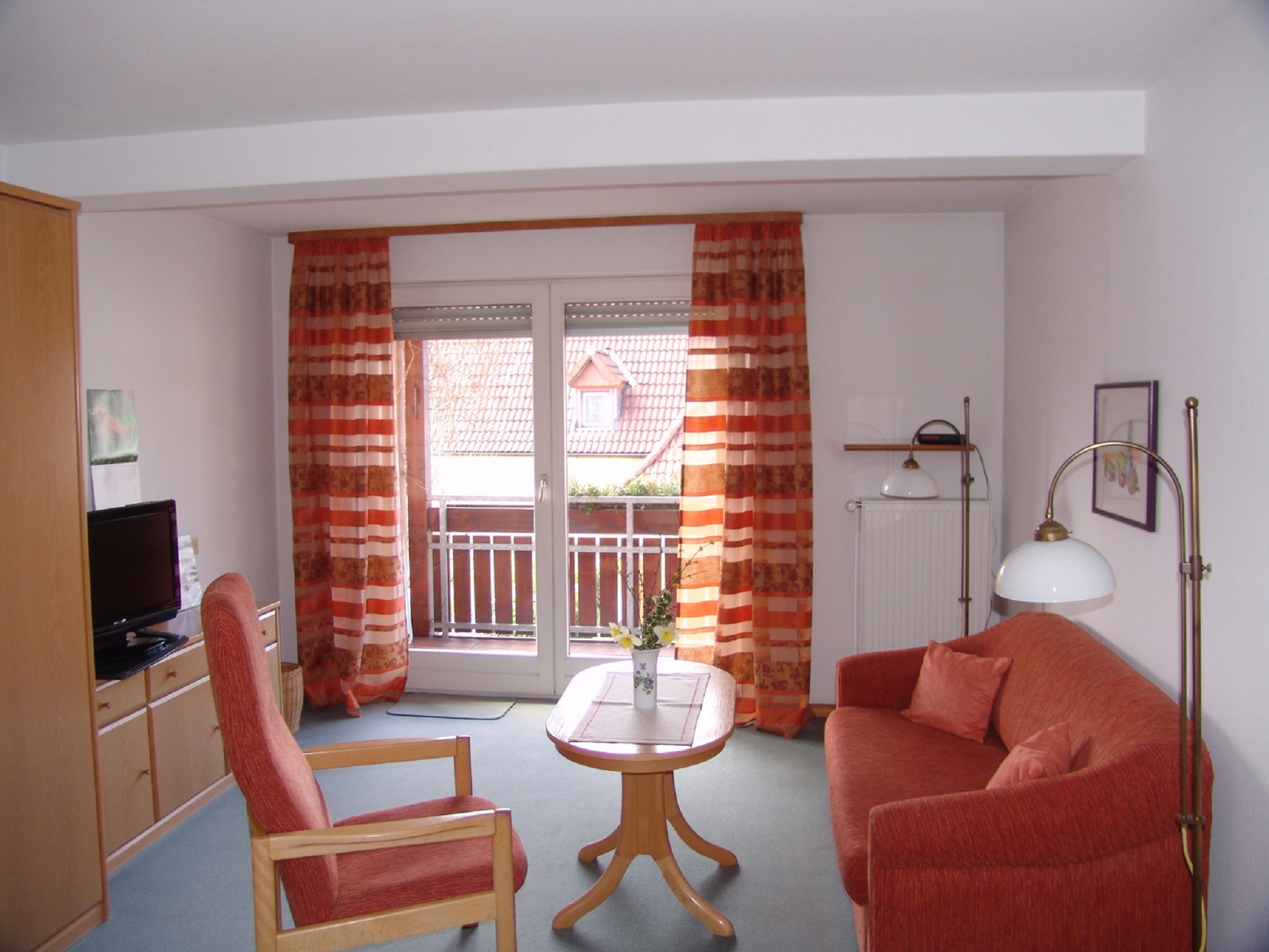 Unsere Ferienwohnung Kräuterstube bietet ca 40 qm Wohnfläche für 1-3 Personen. Die seperate Küche verfügt über eine Essecke, einer Spülmaschine und Kaffeemaschine. Das Badezimmer ist mit Dusche und WC ausgestattet. Das Wohn-/Schlafzimmer ist sehr hell durch die große Fensterfront. Der große Balkon mit gemütlicher Sitzgruppe rundet die Wohnung ab. Bettwäsche und Handtücher stehen Ihnen zur Verfügung, sowie eine Waschmaschine und Trockner. Mit Fernseher, Radio und kostenlosem Wlan ist die Wohnung auch technisch sehr gut ausgestattet.