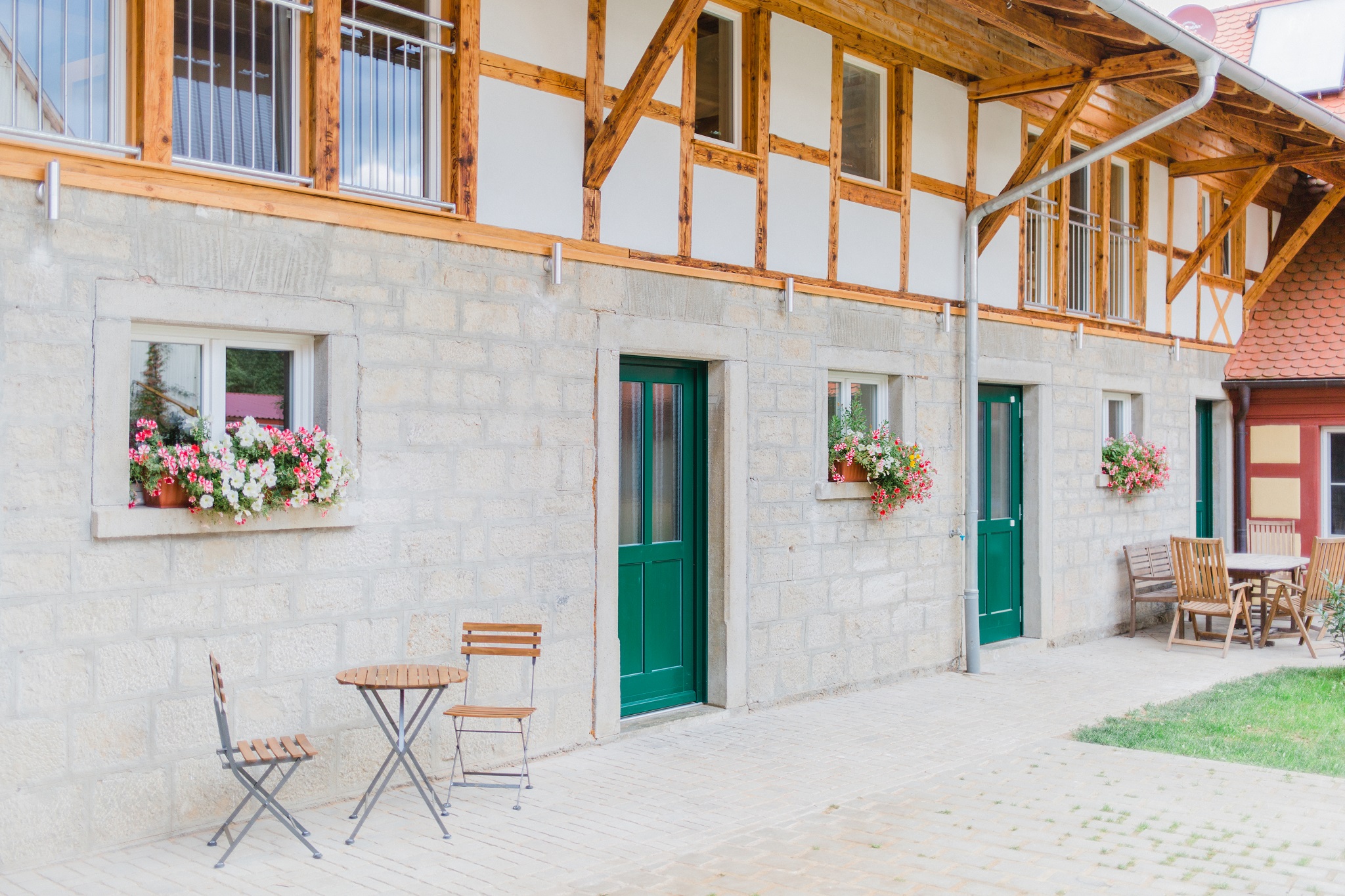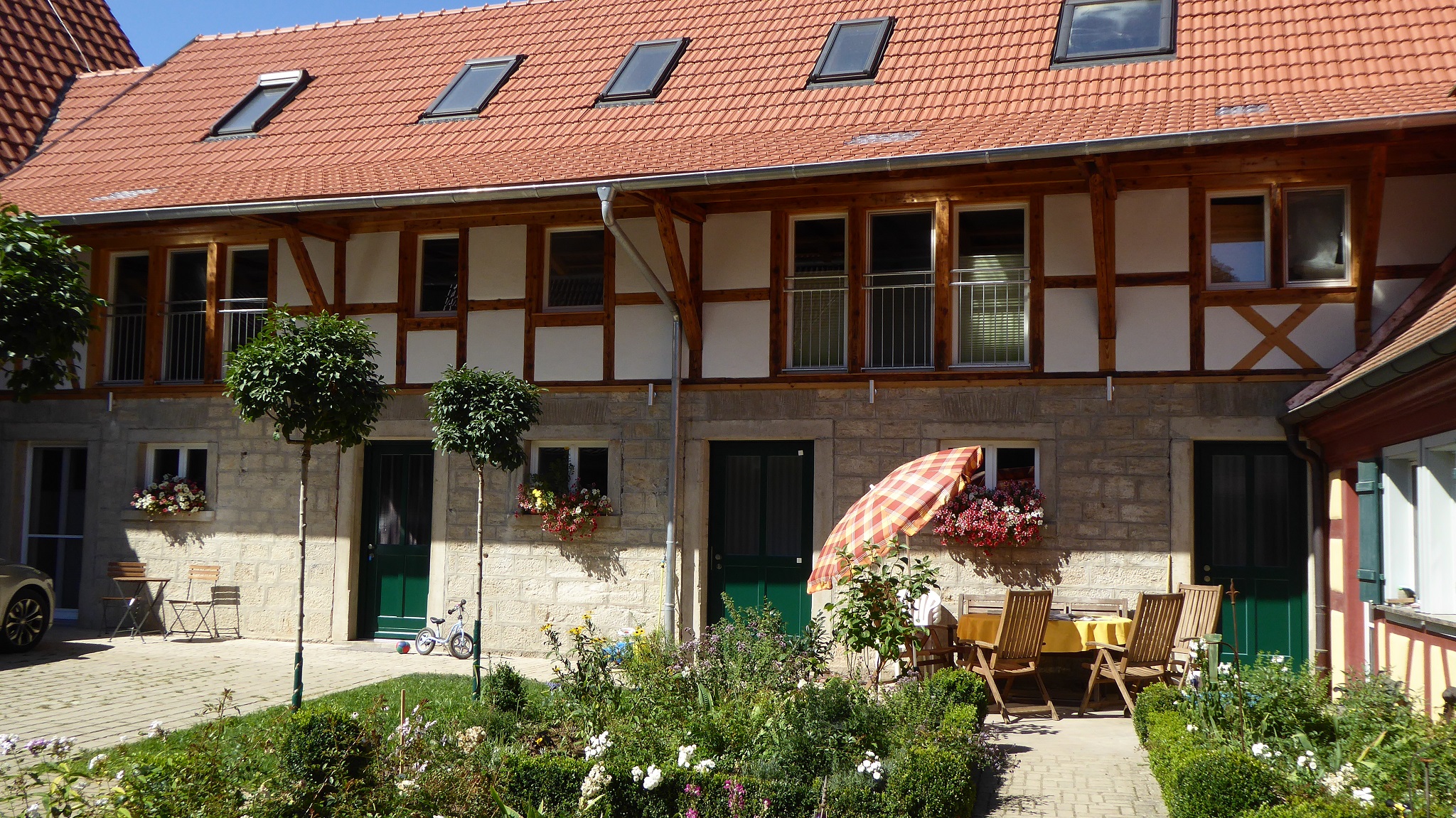 Erholen Sie sich auf unserer denkmalgeschützten Fachwerkhofstelle mit einem wunderschönen großen Landhausgarten. Lauschen Sie in den Wohnungen und im Garten dem Plätschern des Hellbachs.