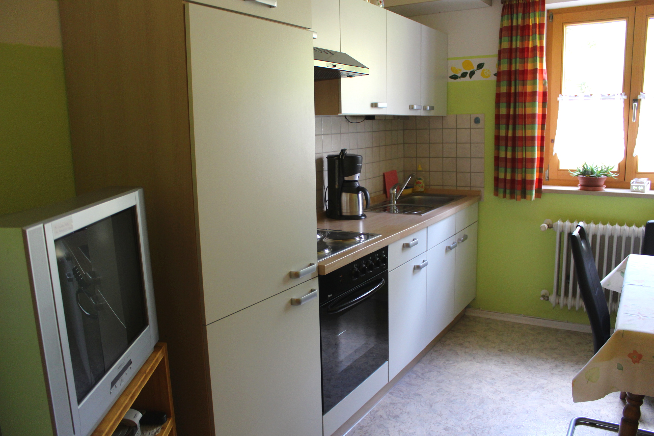 Die Ferienwohnung befindet sich im Untergeschoss des Hauses und kann mit bis zu vier Personen belegt werden.