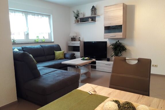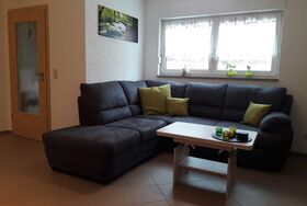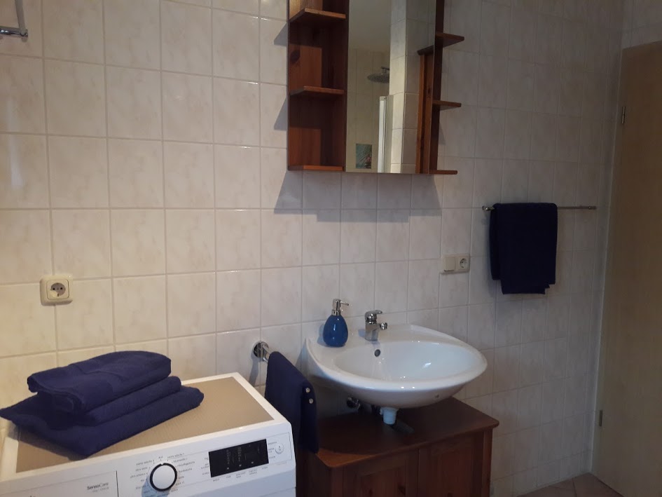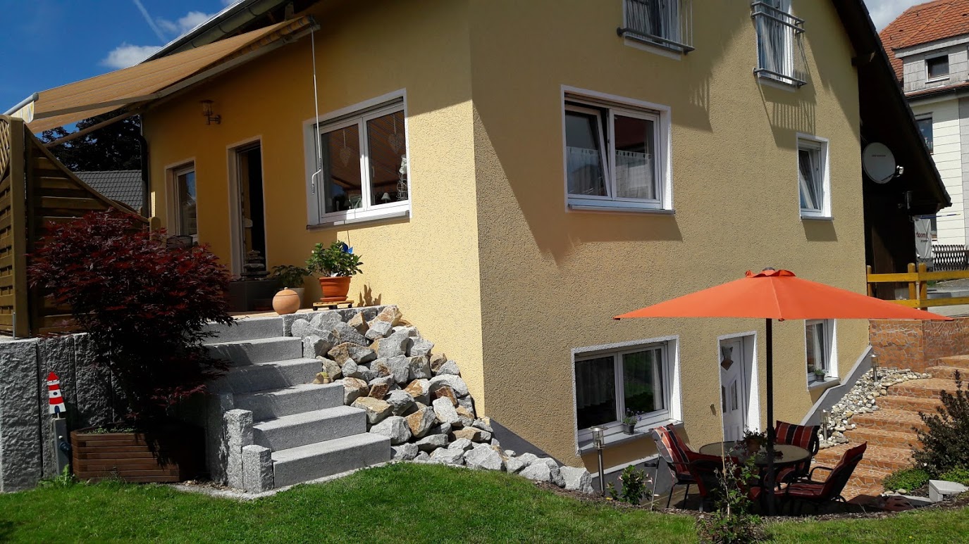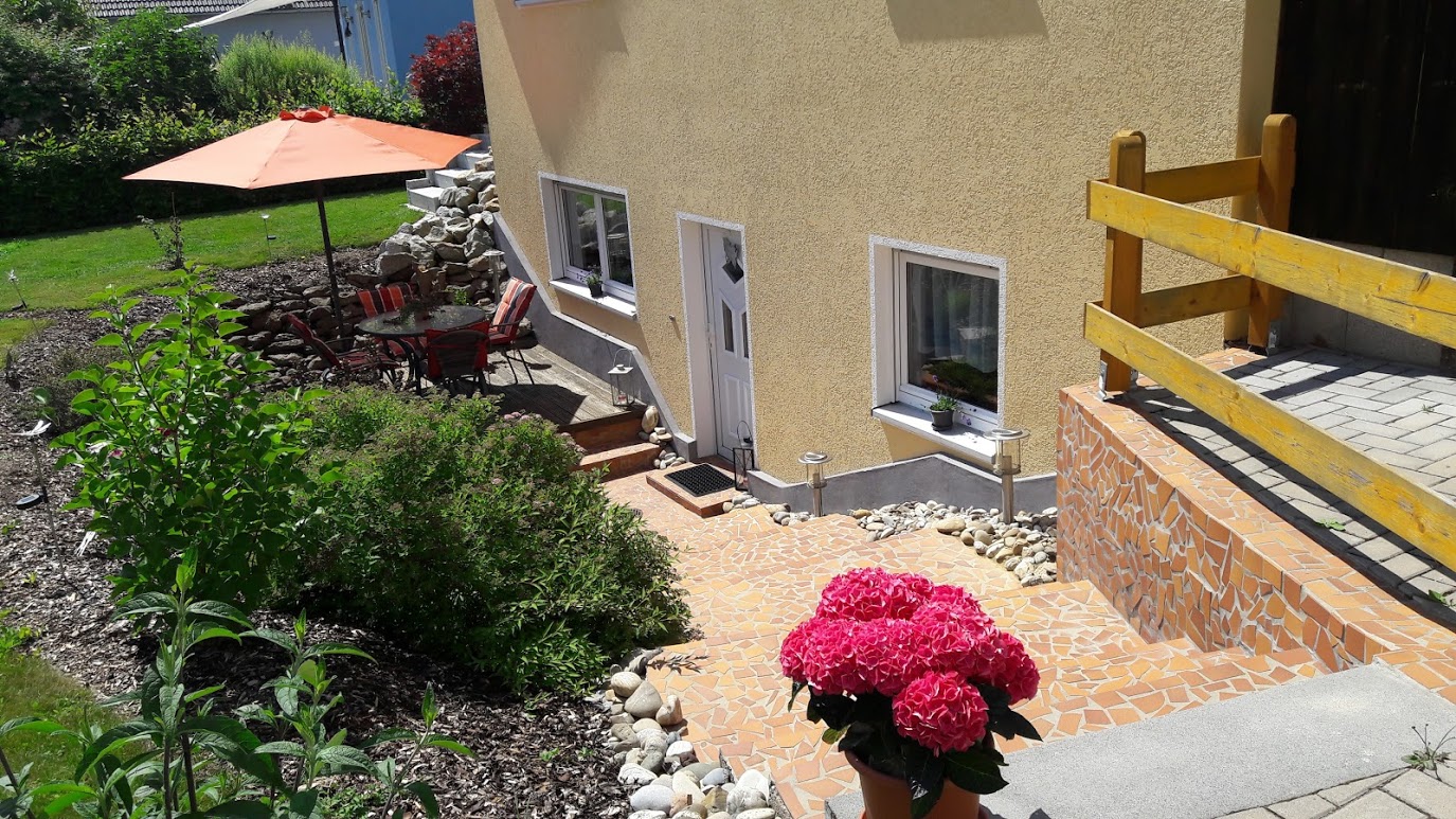 Unsere 40 m² große Ferienwohnung befindet sich im Souterrrain und verfügt über einen separaten Eingang, zugehörigen PKW-Stellplatz und eigener Terrasse mit Gartenmöbeln.