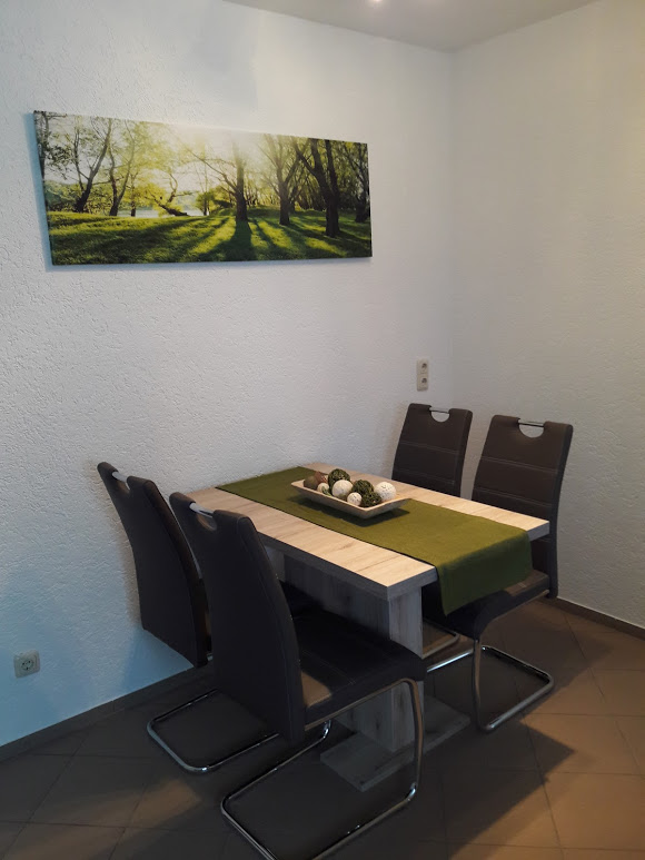 Am großen Esstisch können die Mahlzeiten in Ruhe und entspannt eingenommen werden.