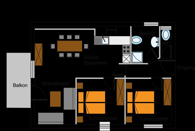 Die moderne Ferienwohnung 2 ist 82 qm groß und für 4 Personen ausgelegt. Die Ferienwohnung verfügt über Küche mit Wasserkocher, Mikrowelle, Kaffeemaschine, Teekocher, Toaster, Kühl-Gefrier-Kombination, Spülmaschine und Esstisch. Der Wohnbereich mit Couch und SAT-TV lädt zum Verweilen ein. Zum Schlafen gibt es zwei Schlafzimmer mit jeweils einem Doppelbett. Das Badezimmer ist mit Dusche und WC ausgestattet. Außerdem gibt es ein separates WC neben dem Eingang. Auf dem schönen Balkon können Sie die Sonne genießen. Bettwäsche und Handtücher sind inklusive und auch Waschmaschine und Trockner sind vorhanden. Haustiere dürfen allerdings nicht mitgebracht werden.