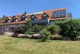 Die schöne Ferienwohnung Lavendel 60qm, Erdgeschoss und behindertengerecht (Schwellenfrei, mit 1m breiten Türen und großer, rollstuhlgerechter Dusche/WC). Sie verfügt über ein großes Schlafzimmer mit Doppelbett und einem Kinderzimmer mit Etagenbett.