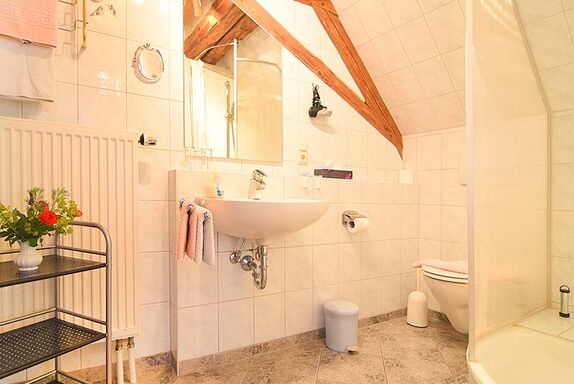 Des Weiteren haben alle unsere Fenster einen Fliegenschutz. Das Bad ist mit Dusche und WC ausgestattet.