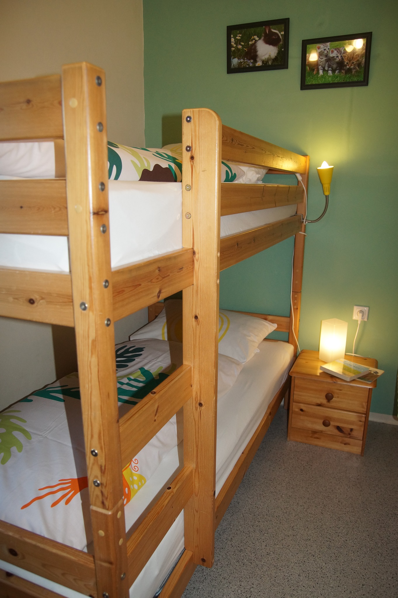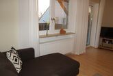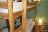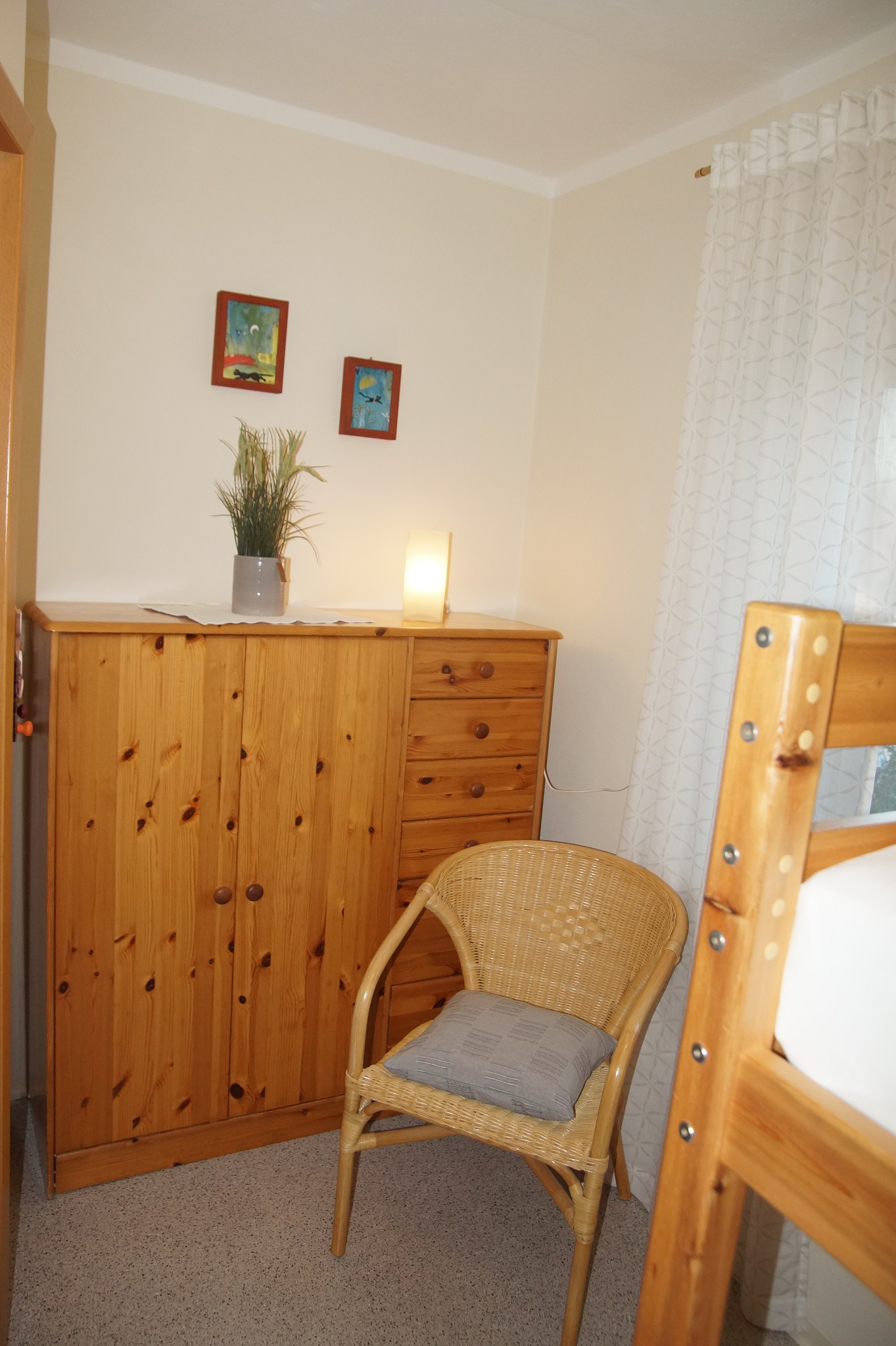 1. Etage, 48qm, 1 Schlafzimmer mit Doppelbett, 1 Kinderzimmer mit Stockbett, Wohnküche mit Essecke.
