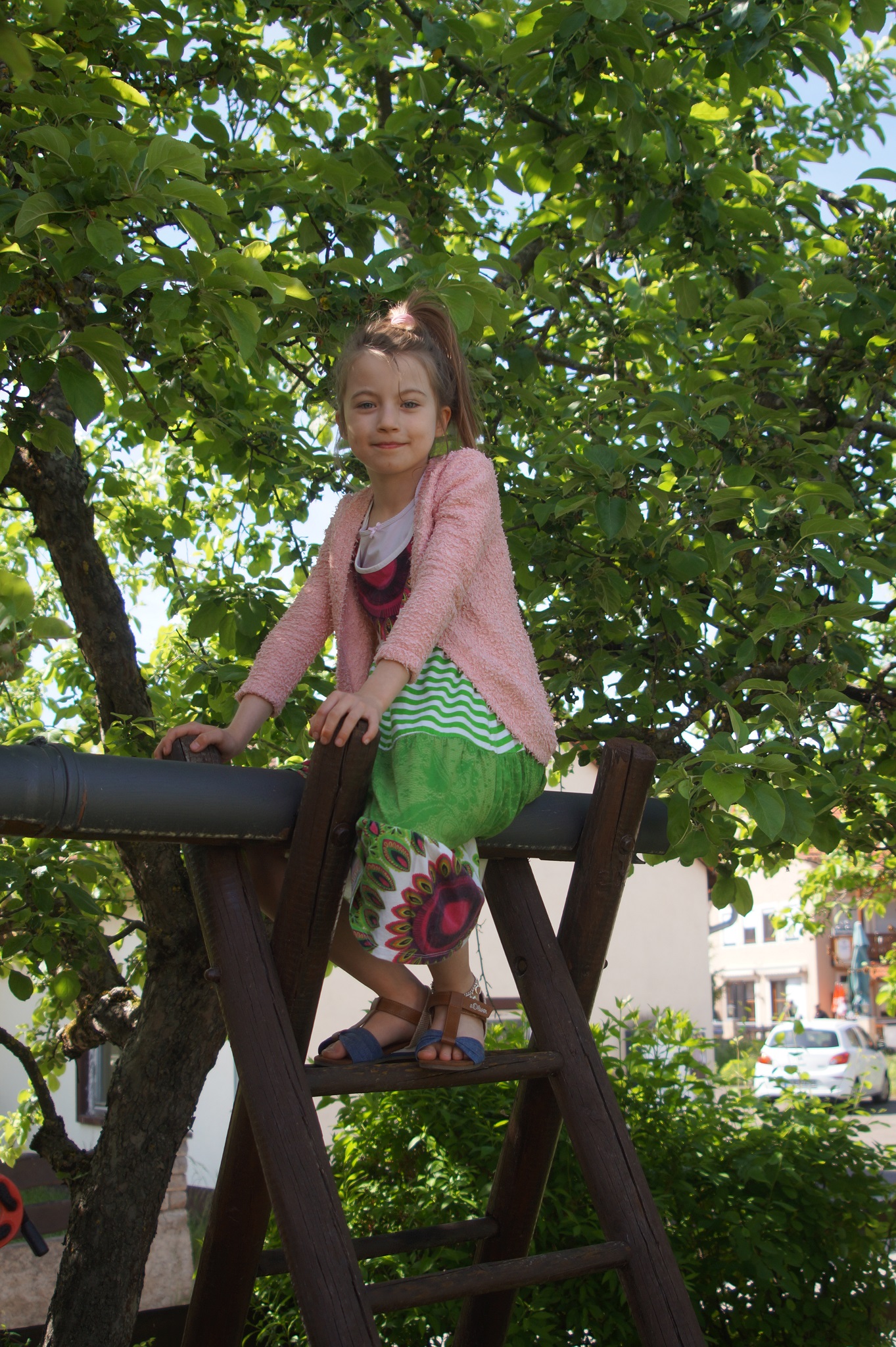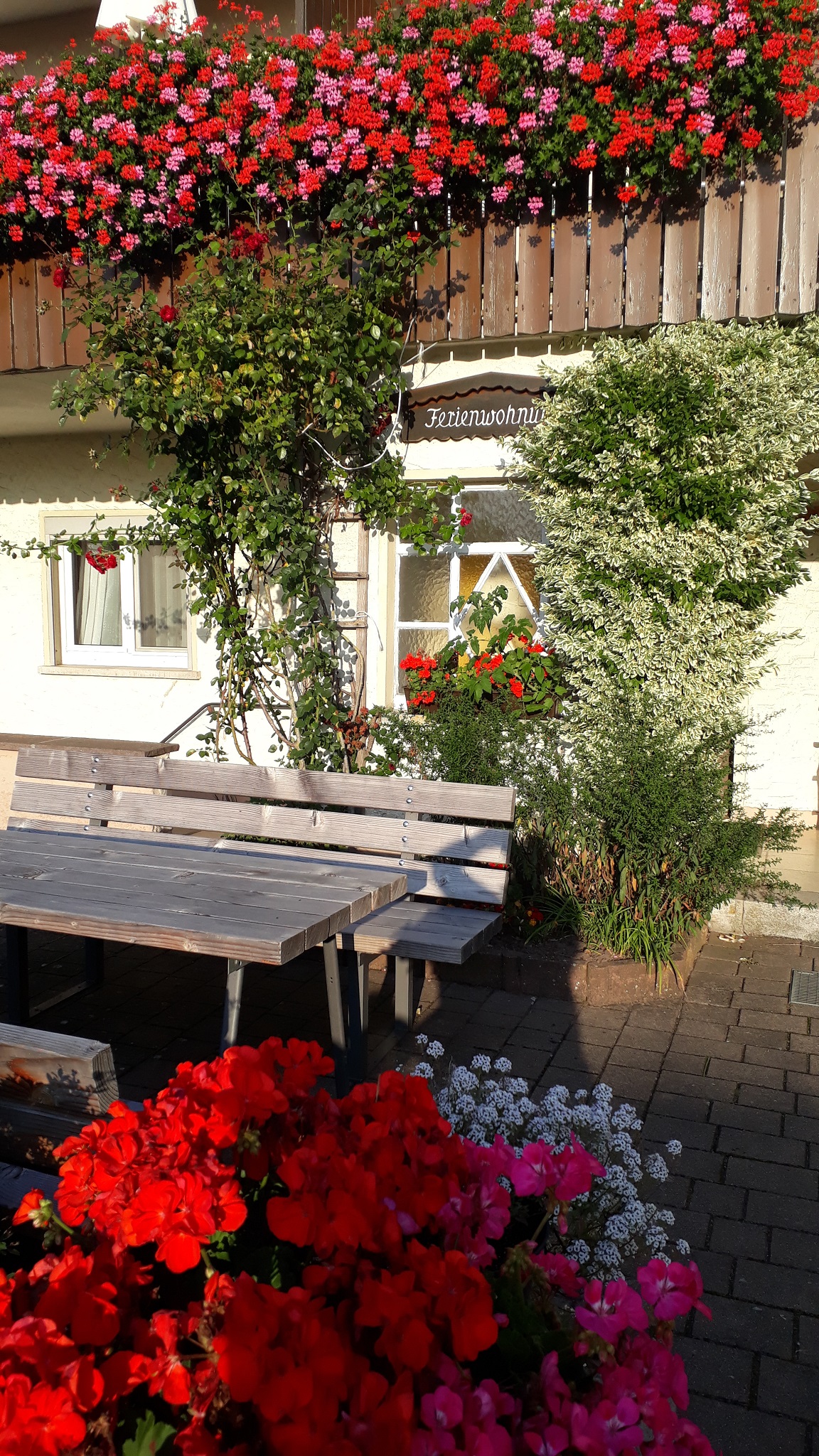 Unsere schöne Pergola im Hof bietet Schutz vor zu viel Sonne oder auch Regen.