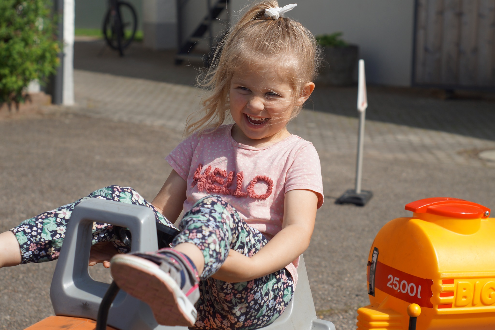 abgeschlossenen Hof und auf dem Spielplatz nach Lust und Laune toben. Verschiedene Tret-Fahrzeuge und viele Spielsachen stehen dazu bereit.