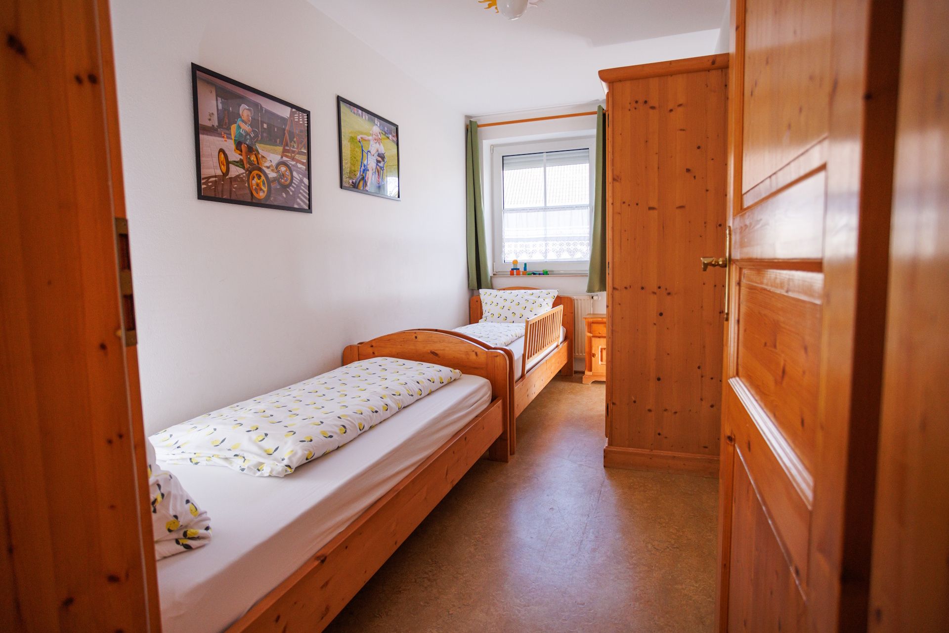 Sie bietet euch drei Schlafzimmer, darunter ein großes Familienbett (260 x 200 cm), sowie einen einladenden Wohnraum mit voll ausgestatteter Küchenzeile, ein modernes Bad mit Dusche und ein zusätzliches WC. Die 70 qm große Wohlfühlwohnung liegt im Erdgeschoss unseres Gästehauses und ist wunderbar geeignet für große Familien und auch für alle, die gemeinsam mit Oma und Opa reisen.
