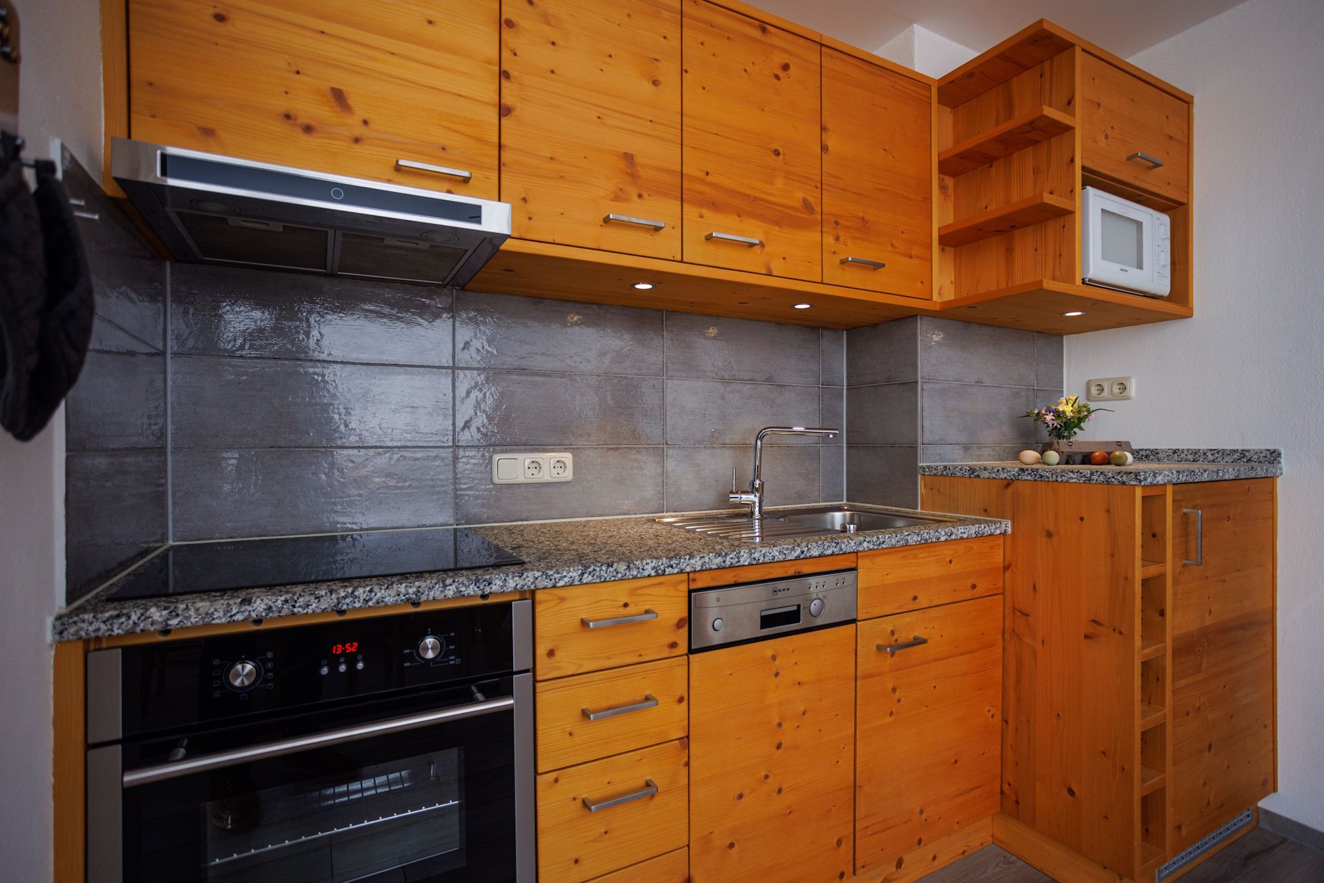 Ihr wohnt in der ersten Etage unseres Gästehauses, und die voll ausgestattete Küche mit Induktionskochfeld, Backofen, Spülmaschine, Kaffeemaschine, Toaster, Mikrowelle, Wasserkocher und vielem mehr macht das Kochen zum gemeinsamen Erlebnis. Euch stehen kostenloses WLAN, SAT-TV, eine Stereoanlage, ein Fön sowie Mückenschutz an Fenstern und Türen zur Verfügung – damit ihr euch rundum wohlfühlt.