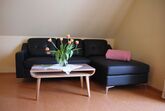 Die Wohnung mit Balkon befindet sich im zweiten Stock des Bauernhauses. Die gemütliche und kindersichere Wohnung ist im modernen fränkischen Stil eingerichtet für einen erholsamen Urlaub.