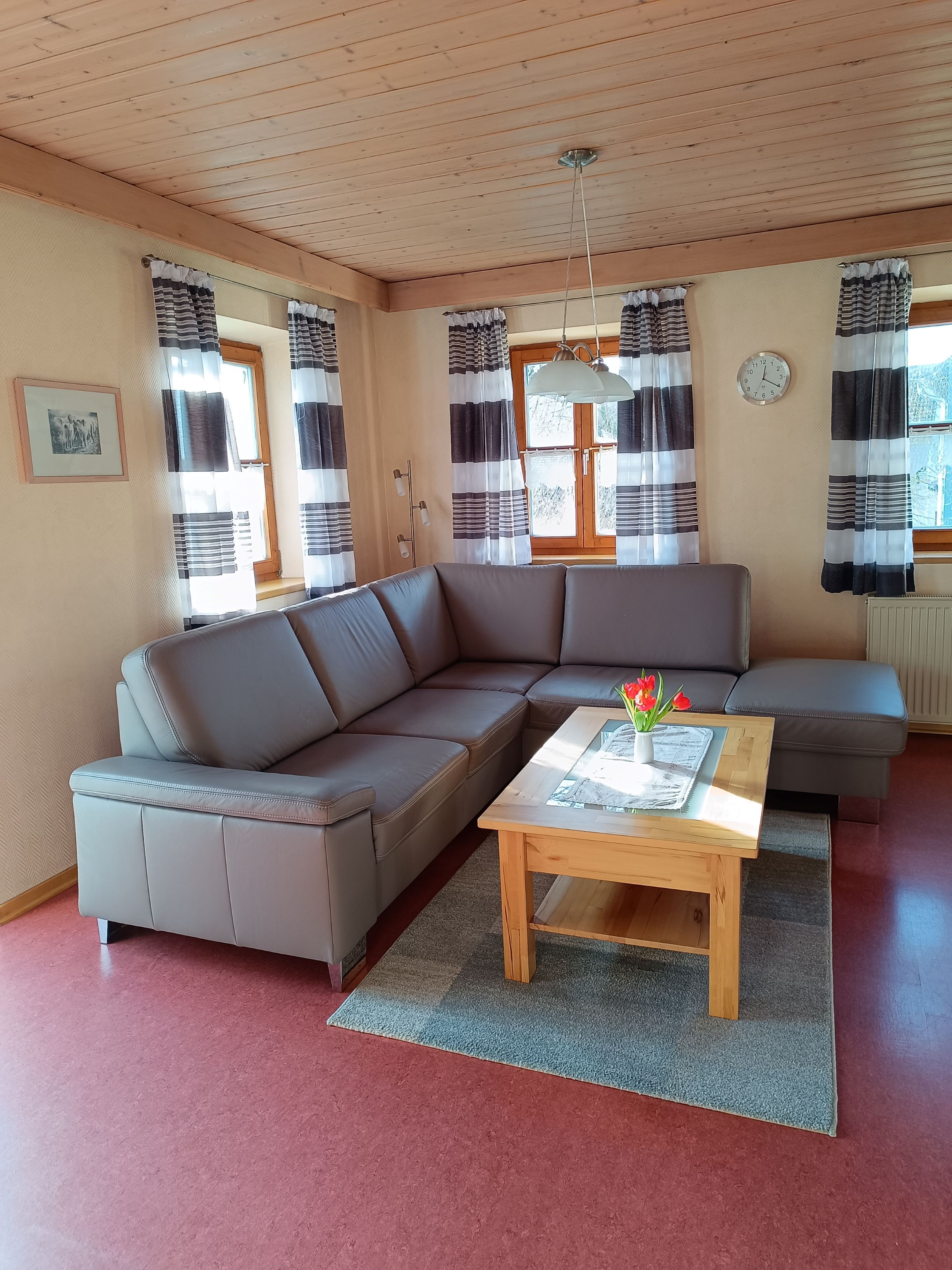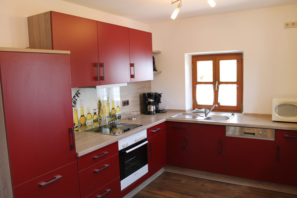 Im ersten Stock unseres Bauernhauses liegt diese große Ferienwohnung auf 85 m2 mit Balkon. Liebevoll sowie kindersicher ist sie eingerichtet mit einer modernen Küche, welche mit Herd, Backofen, Spülmaschine, Mikrowelle, Kaffeemaschine und Kühlschrank ausgestattet ist. Das gemütliche Wohnzimmer mit Kachelofen lädt an den schönsten Tage des Jahres zum Verweilen ein. Sie finden in unserer Unterkunft zwei Schlafzimmer mit Doppelbett vor. Daneben gibt es eine bequeme Essecke sowie ein Bad mit Dusche und WC.