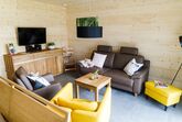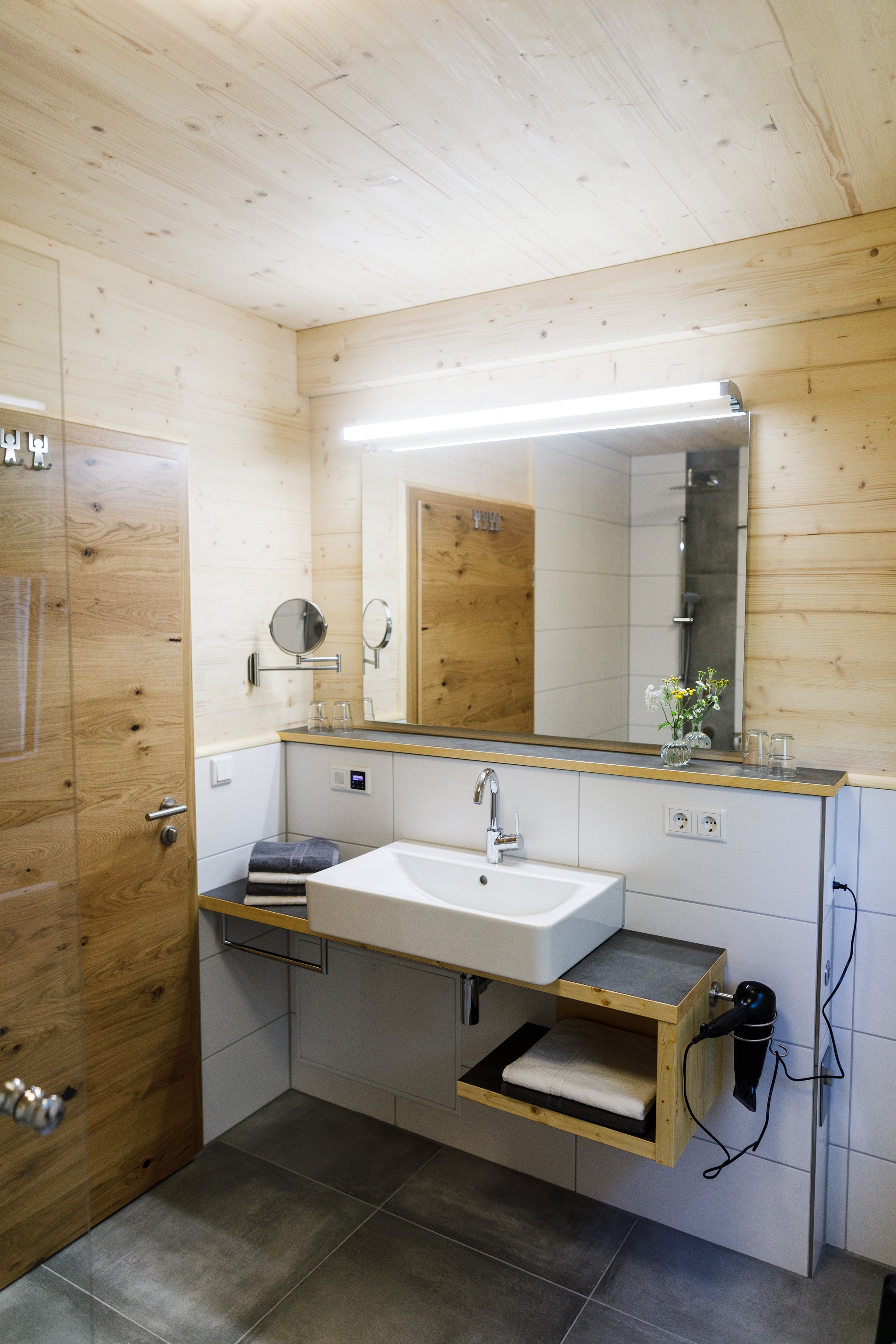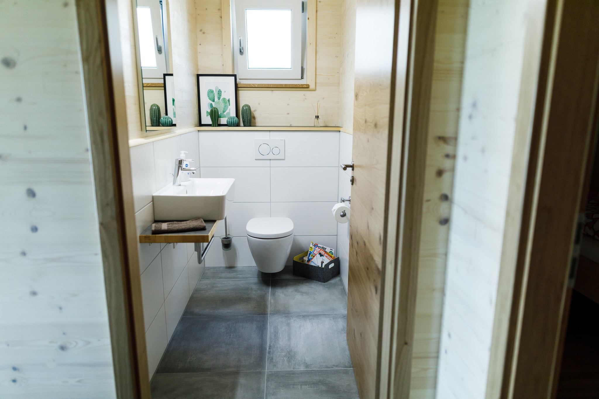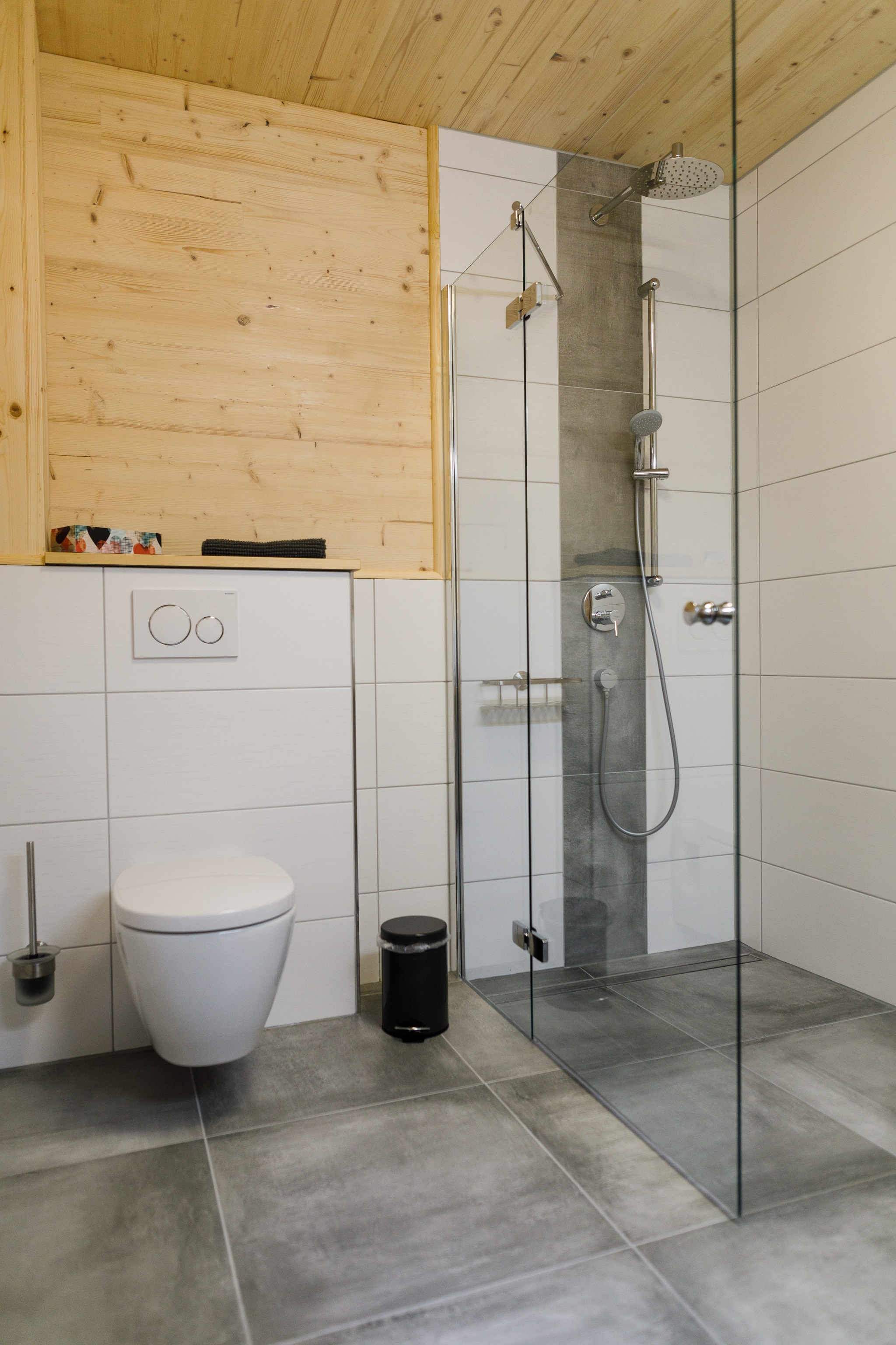 Waldblick - die ebenerdige 86 m² große Komfort-Ferienwohnung liegt im Erdgeschoß von Haus 1 und ist teilweise barrierefrei. Wir verwendeten bei der Bauphase und Ausstattung ausschließlich ökologische, natürliche Produkte. Daher ist die Wohnung sehr gut für Allergiker geeignet. Sie verfügt über eine große Süd/West-Terrasse mit freiem Blick über Wiesen und Äcker bis hin zum Mönchswald. Ein weiterer kleiner Außenbereich ist vom Elternschlafzimmer erreichbar. Beide Terrassen sind mit einer Sitzgruppe und einem Sonnenschirm ausgestattet.