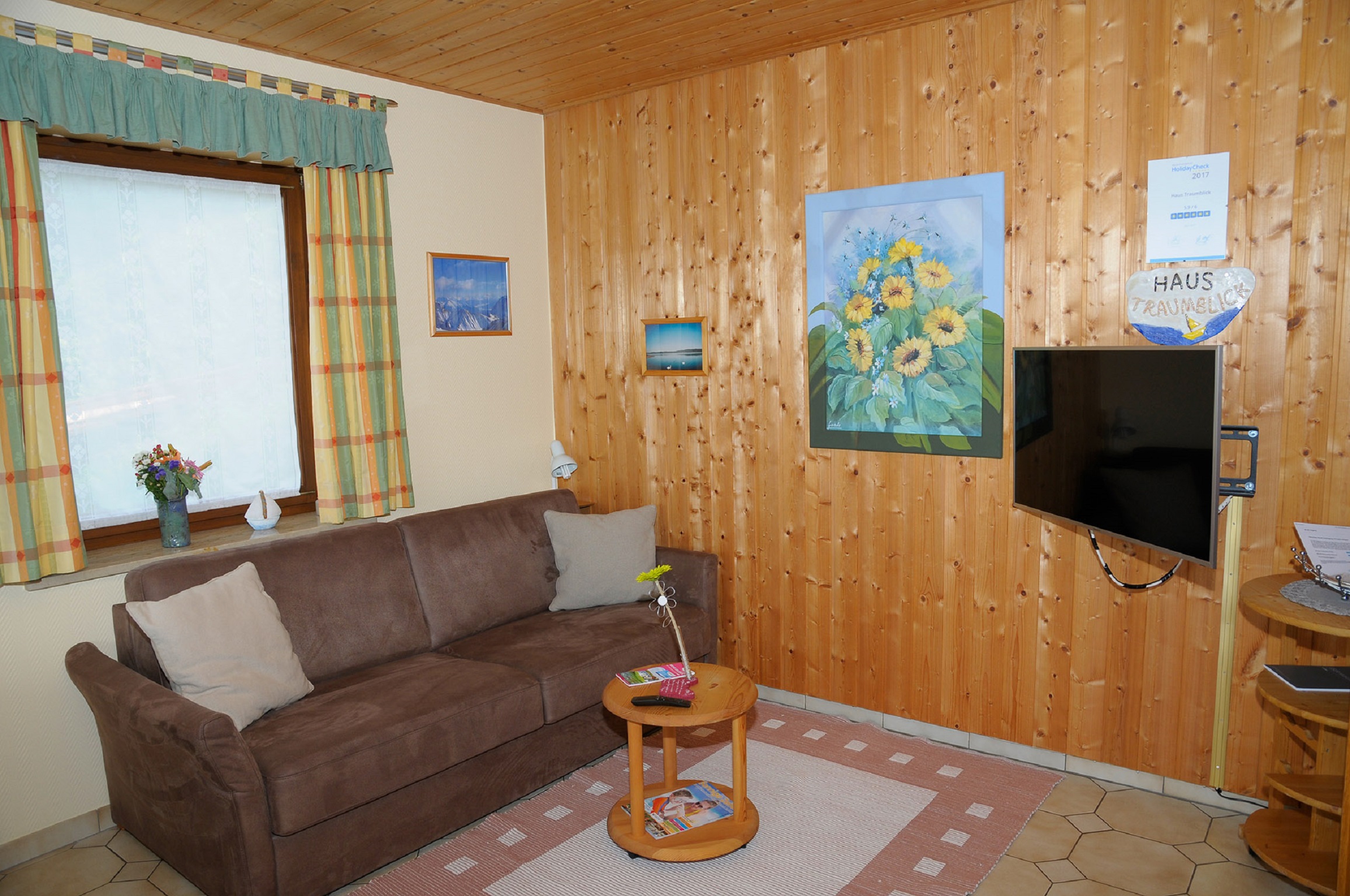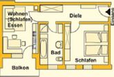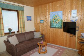 Die Wohnung besteht aus 1 Doppelbettzimmer, Wohn-/Aufenthaltsraum mit Schlafcouch, kompl. Küche (mit Spülmaschine) und Essecke, großer Sat-TV; Bad mit Wanne, Dusche und WC. Kinderbett, Hochstuhl und Wickelauflage stehen auf Wunsch zur Verfügung. Alle Fenster und Türe mit Fliegengittern!