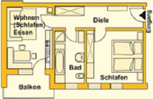 Unsere Ferienwohnung mit Terrasse eignet sich für 4 Personen und bietet ca. 53 qm Wohnfläche.