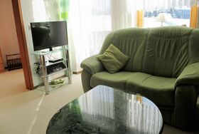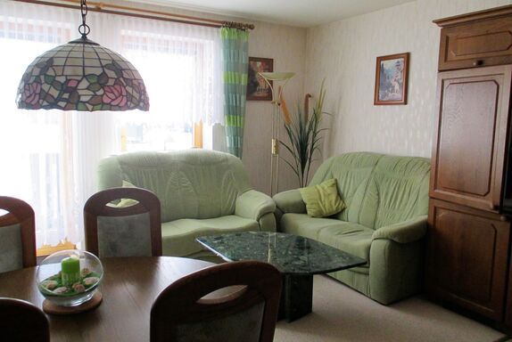 Unsere Wohnung Ginger wurde nach unserem Jungpferd, welches bei uns auf der Finkenmühle geboren wurde, benannt. Die Wohnung befindet sich in der zweiten Etage und hat einen Balkon, auf dem man schon zum Frühstück die Sonne genießen kann. Die Wohnung verfügt über einen Flur mit Schrank, einen großen Wohn-Essbereich mit Flachbildfernseher, eine große Einbauküche, ausgestattet mit Kühl-Gefrierschrank, Toaster, Kaffeemaschine etc., ein Schlafzimmer mit Doppelbett (140cm x 200cm) und Flachbildfernseher, einen zweiten Schlafraum mit zwei Einzelbetten (90cm x 200cm) und ein Bad mit Dusche, Waschtisch, Spiegelschrank mit Beleuchtung, WC und Waschmaschine( zusätzliche Kosten durch Benutzung der Waschmaschine, da diese durch einen Münzautomat betrieben wird).