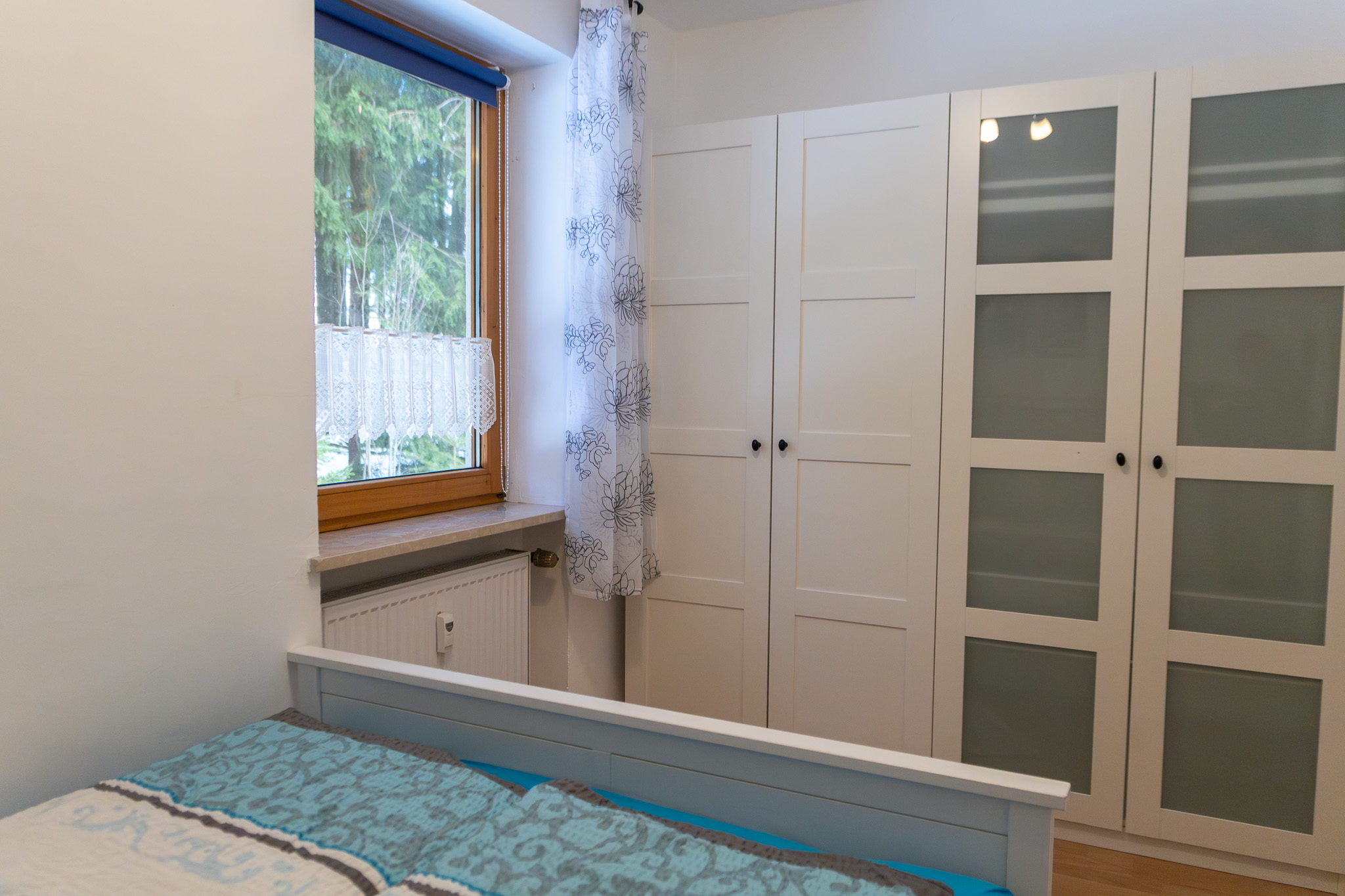 Das Schlafzimmer ist mit einem französischem Bett (1,40mx2,00m), einem Nachtschränkchen und großen Kleiderschrank ausgestattet.