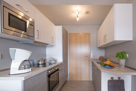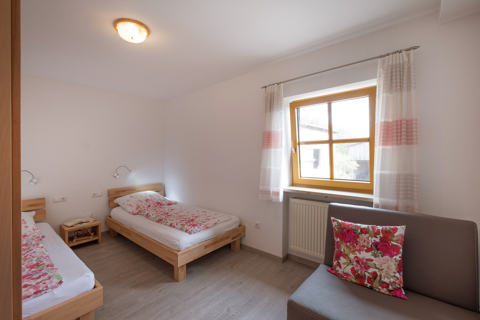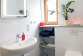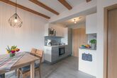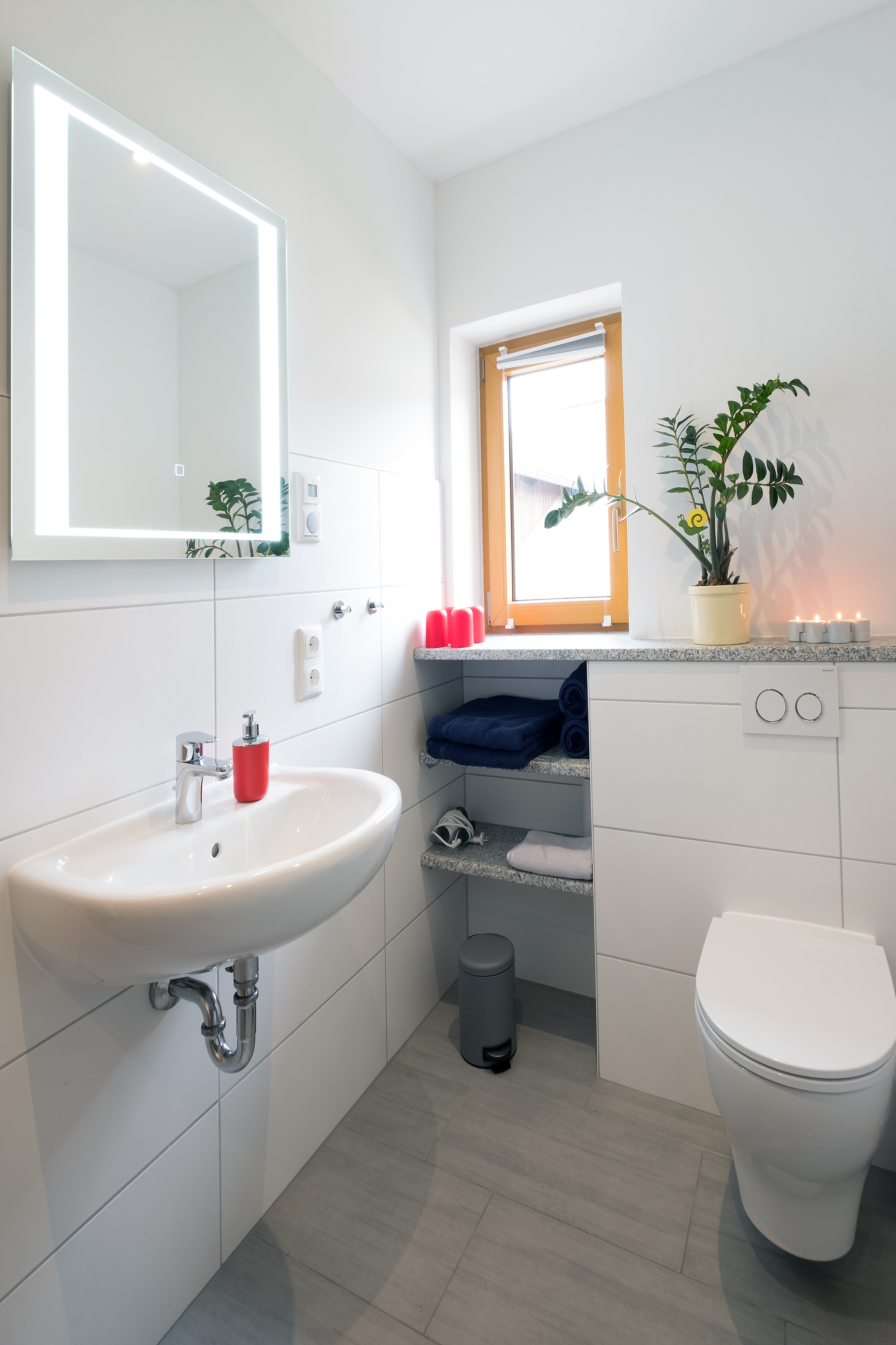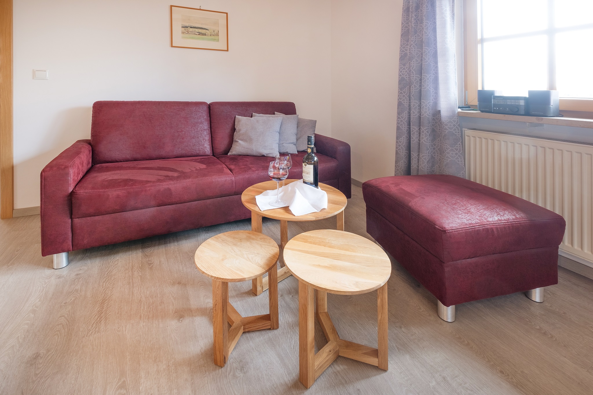Unsere moderne Ferienwohnung 4 ist beliebt bei Familien. Sie hat zwei großzügige Schlafzimmer, wobei wir hier Babybetten bereitstellen können oder das Sofa für ein fünftes Familienmitlied im Kinderzimmer nutzen können. Die Küche ist voll ausgestattet (z.B. Spülmaschine, Kühlschrank, Kochfeld, Mikrowelle, Wasserkocher) und am angrenzenden Essbereich kann man gemütlich beieinander sitzen. Der Wohnbereich ist mit Sofa, Hocker und TV ausgestattet. Im Flur ist ausreichend Platz für Jacken und Schuhe vorhanden. Im Bad befindet sich eine bodengleiche Dusche. WLAN
