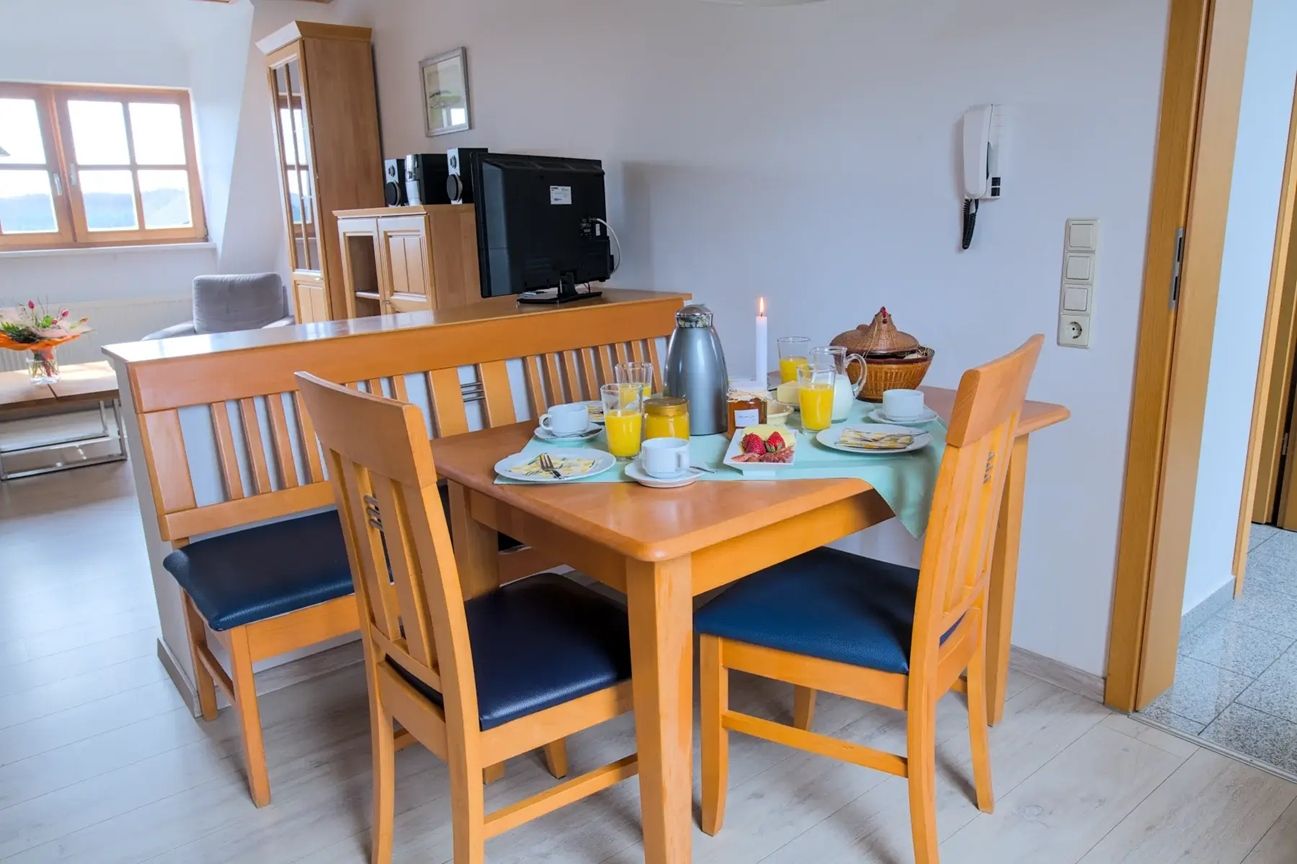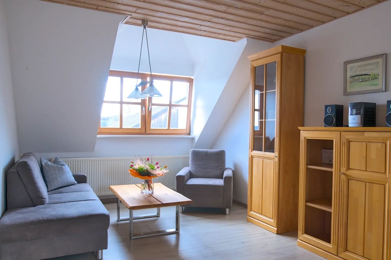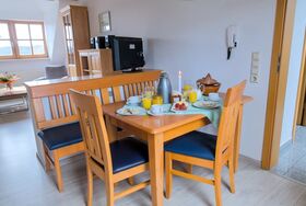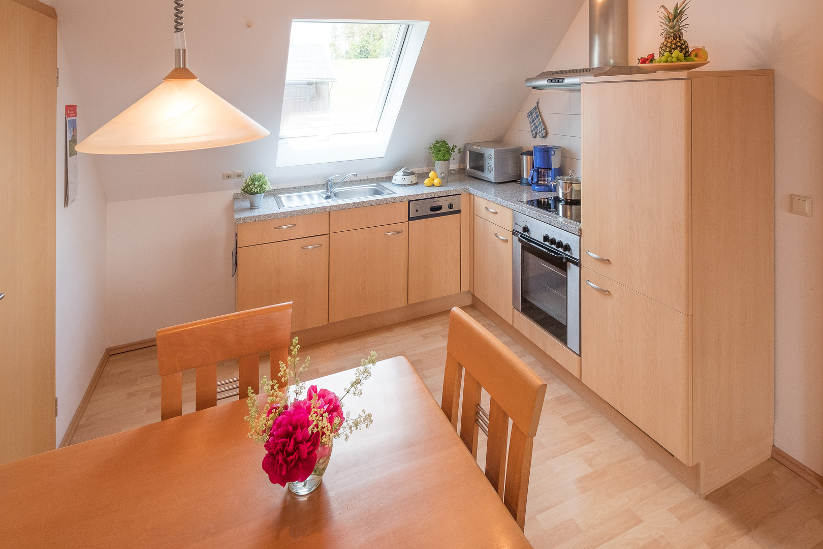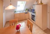 Die Ferienwohnung 7 ist bei Familien und Paaren gleichermaßen beliebt, denn sie verfügt über zwei schöne Schlafzimmer mit Doppelbetten. Platz für ein Kinderbettchen ist auch genug vorhanden. Der Wohnbereich mit Sofa, Sessel und TV lädt zum Verweilen ein. Die Küche ist komplett ausgestattet (z.B. Geschirrspüler, Wasserkocher, Mikrowelle, Ceran-Kochfeld). Der Essbereich mit Bank und Stühlen bietet Platz für Alle. WC und Bad (mit Badewanne) sind getrennt. Ein großer Eingangsbereich bietet viel Ablagefläche für Koffer, Schuhe und Jacken. Auf WLAN müssen Sie auch hier nicht verzichten.