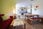 Die Wohnung Mohnblume ist ca. 60 m² groß und befindet sich im 1. Stock mit überdachtem Balkon und Zugang zur Liegewiese.