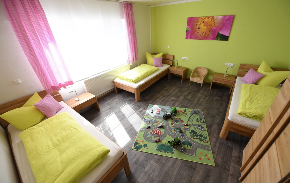 Für die Kinder bieten wir ein wöchentliches Programm, sowie auf unserem Hof ein Spielzimmer, Tretschlepper, Kettcars, Dreirad, Bobby-Car, Sandkasten mit Spielküche, Streicheltiere und viel Platz zum Spielen.