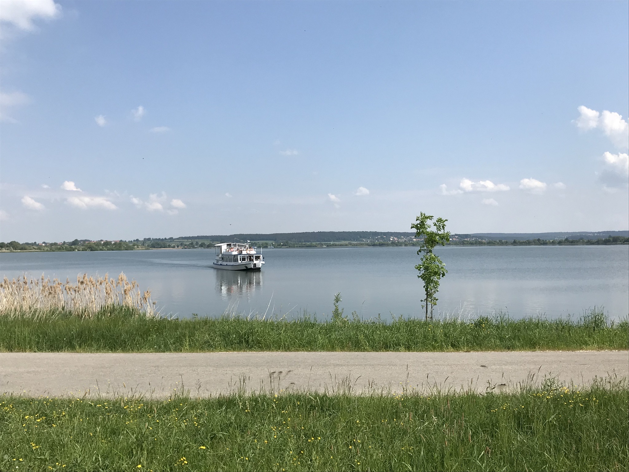 Unser eigener Weiher lädt zum Baden, Boot fahren oder Angeln ein.