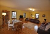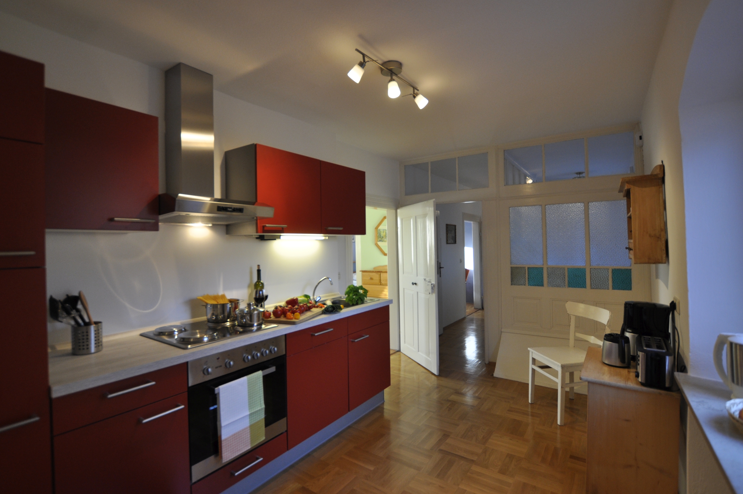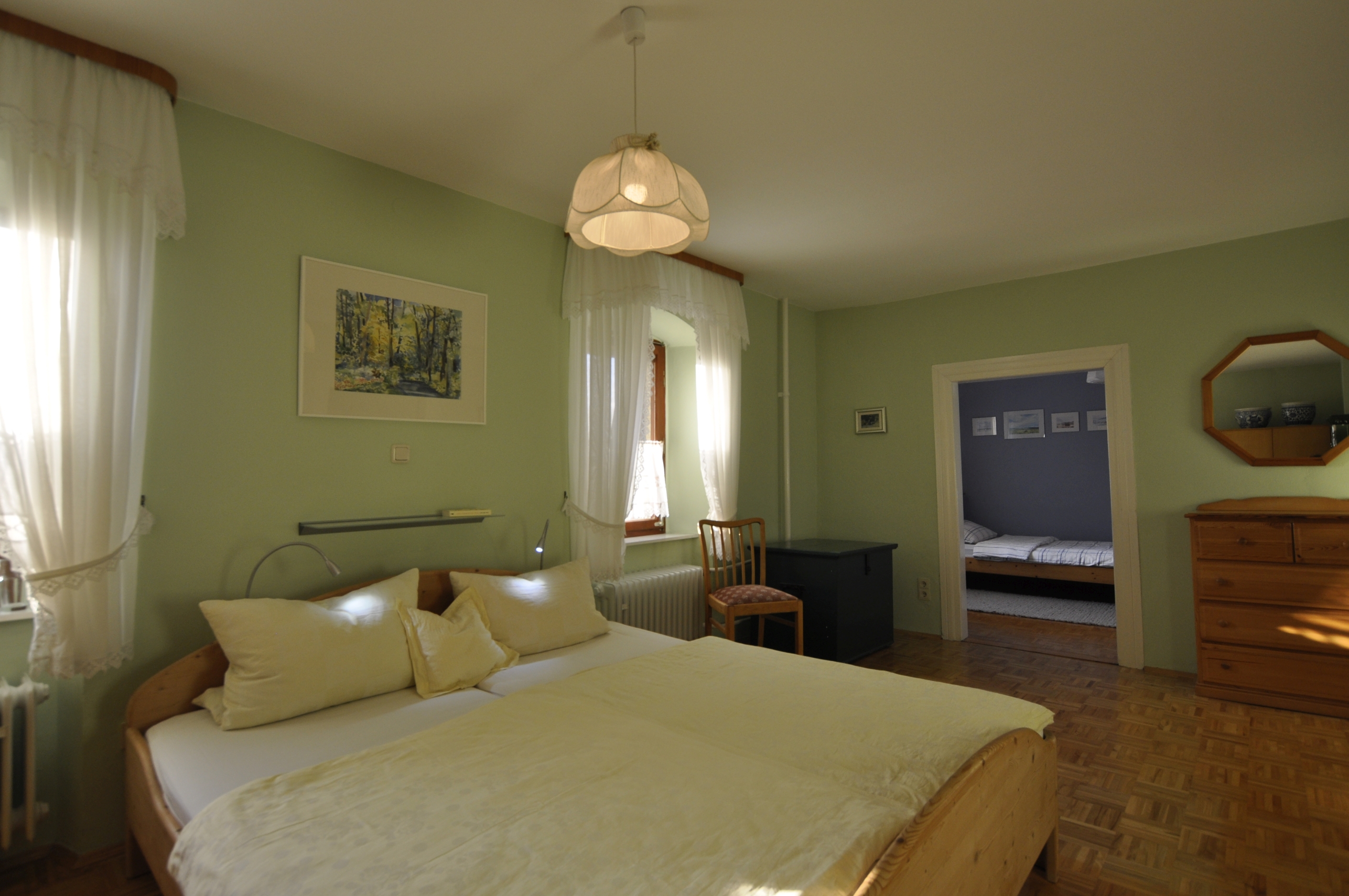 Die großzügige und geschmackvolle Wohnung liegt im 1. Stock des denkmalgeschützen Anwesens und bietet einen herrlichen Ausblick auf den Landhausgarten und die umliegende Wiesen. Parkettböden, historische und moderne Einrichtung in gelungener Kombination und das stimmige Designkonzept sind Grundlage der gehobenen Ausstattung. Im historischen Innenhof und im Garten bieten sich diverse Sitzmöglichkeiten und können jederzeit von unseren Gästen genützt werden. Außerdem finden Kinder Schaukeln, Sandspielzeug und Matschwasser in der historischen Viehtränke.