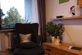 Sonnige, gemütliche kleine Ferienwohnung im 3. OG mit großem Balkon. Ein Aufzug ist vorhanden und es gibt einen Wohnraum mit abgetrenntem Schlafbereich, einer Küche und Bad. Die Ferienwohnung bietet Platz für 2 Personen, eine Aufbettung ist möglich. Sie können Ihren Aufenthalt auf einer Größe von 38 qm genießen.