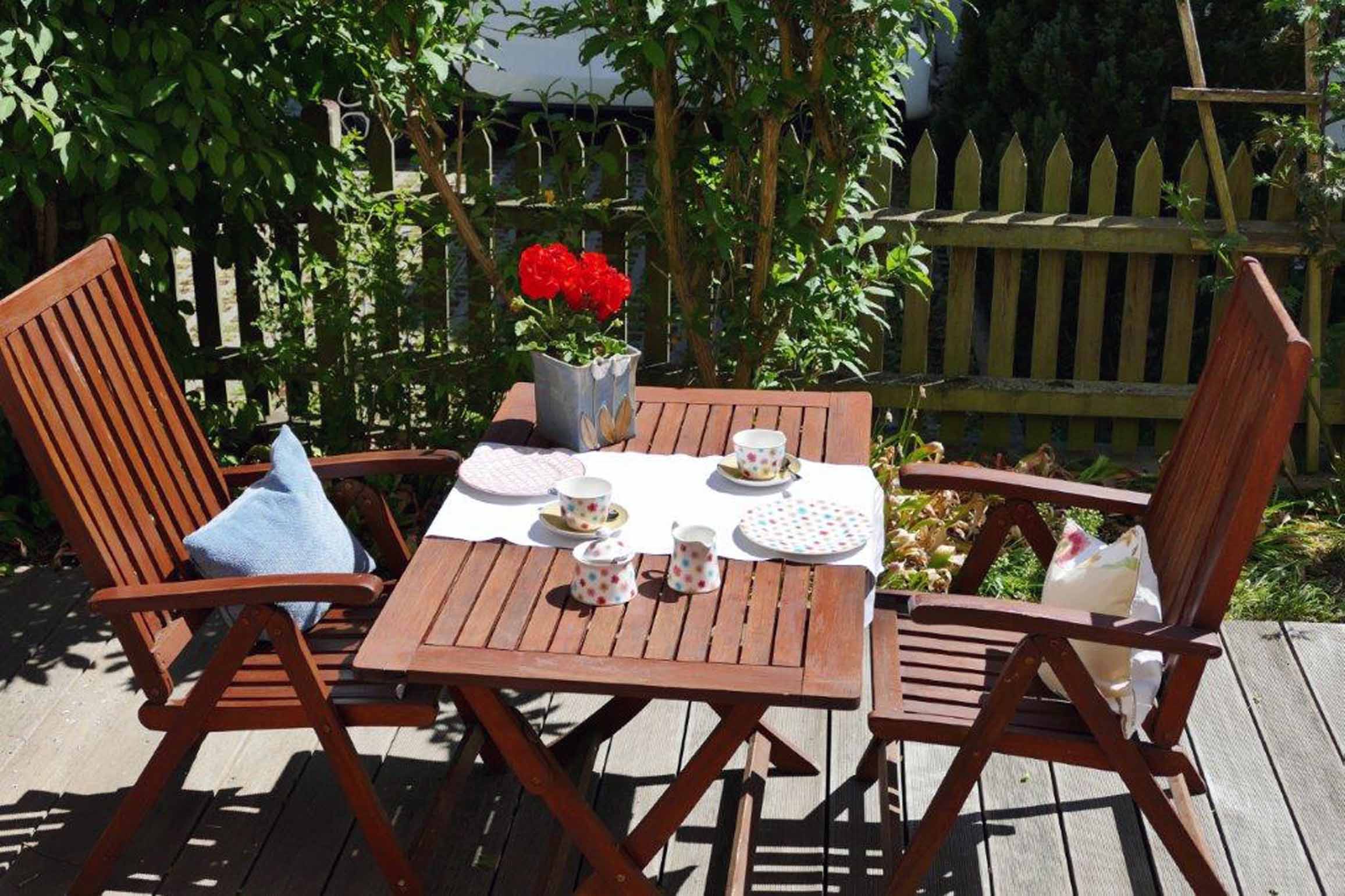 Zur Verfügung stehen Ihnen zwei abgeschlossene, kinderfreundliche Ferienwohnungen im Erdgeschoss mit direktem Zugang auf eine möblierte Holzterrasse.