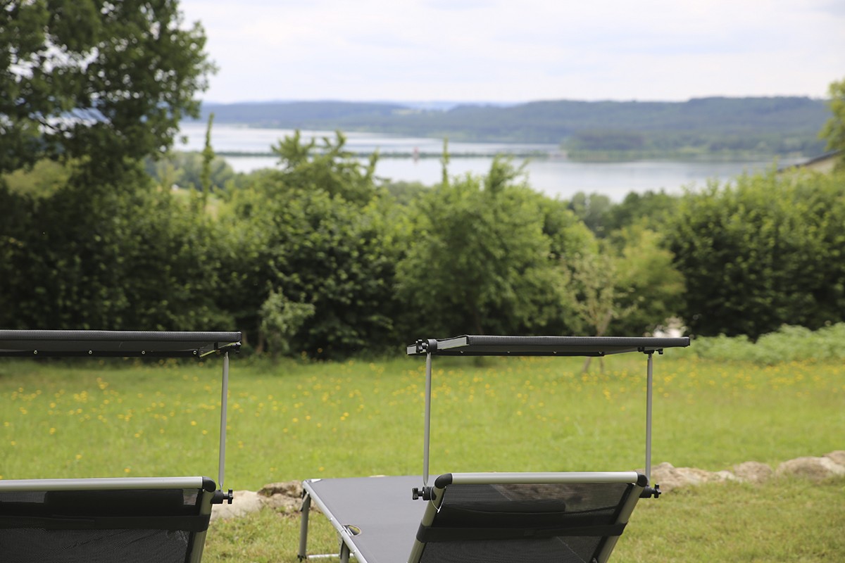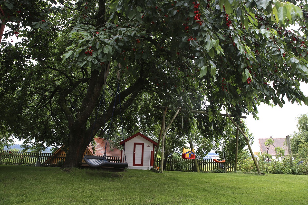 Unsere großzügige Wiese mit Blick über beide Seen lädt zum Toben für große und kleine Kinder ein. Im abgeschlossenen Hofraum befinden sich Sitzmöglichkeiten, Rutsche, Sandkiste, Spielhaus, Gartentrampolin etc.