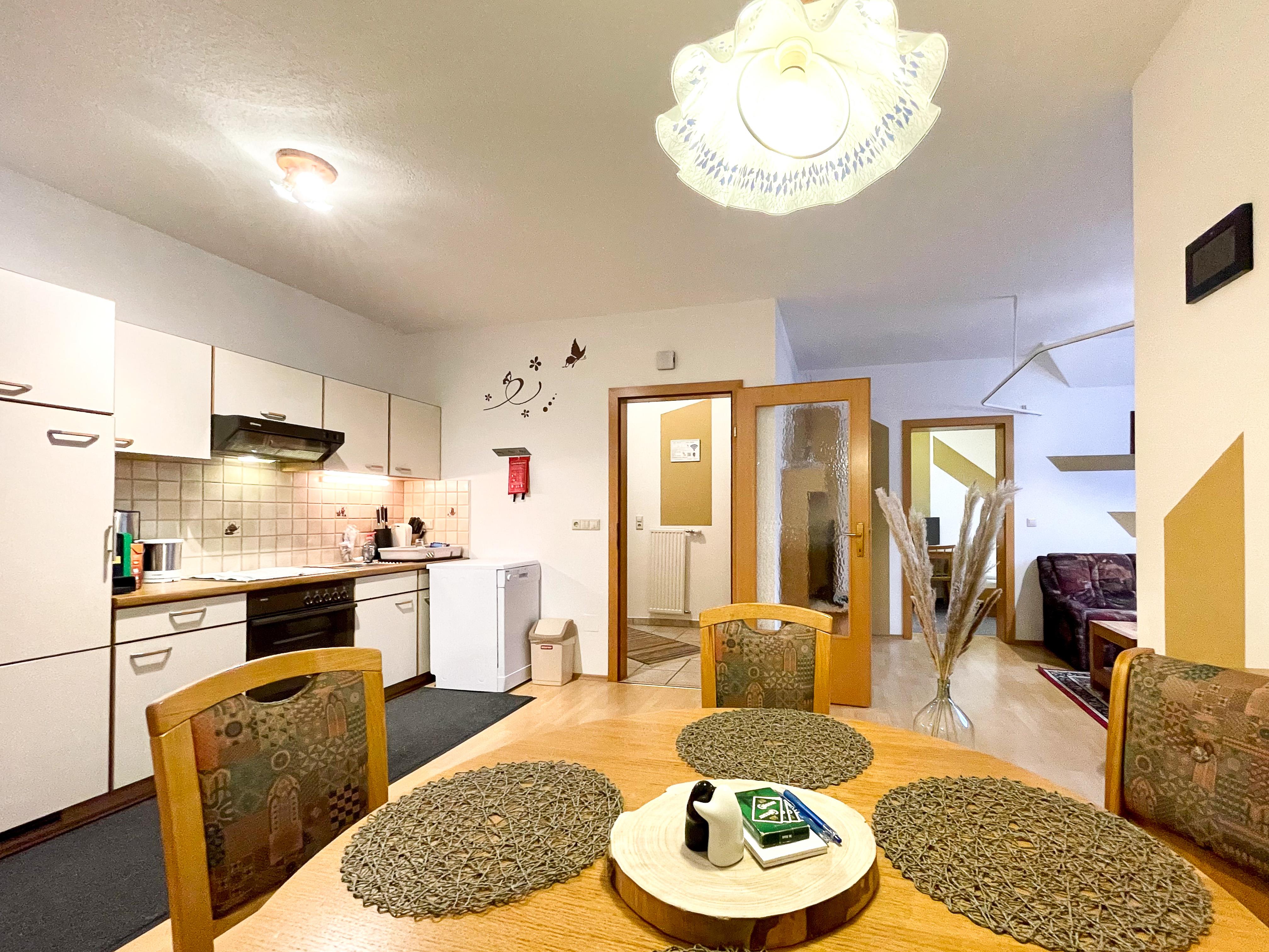 Nr.3. Das Appartement Nr.3 ist für max. 6 Personen und hat 1 Doppelzimmer, 2 Einzelzimmer, eine Doppel-Schlafcouch in der Wohnküche, (4 Schlafräume), komplett ausgestattete Küche mit Essecke mit Geschirrspüler, Backofen, Mikrowelle, Gefrierschrank, Kühlschrank, Kaffeemaschine, Toaster, Radio-CD-Player, Essecke, Dusche/WC mit Duschgel- und Seifenspender, Haarfön, Hand- und Badetücher, Vorraum mit Garderobe und Balkon. Jeder Wohn- und Schlafraum ist Sat-TV sowie allergikerfreier Bettwäsche ausgestattet. Im gesamten Gasthof Stralz´n ist für Hausgäste FREE-WLAN.