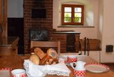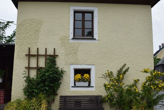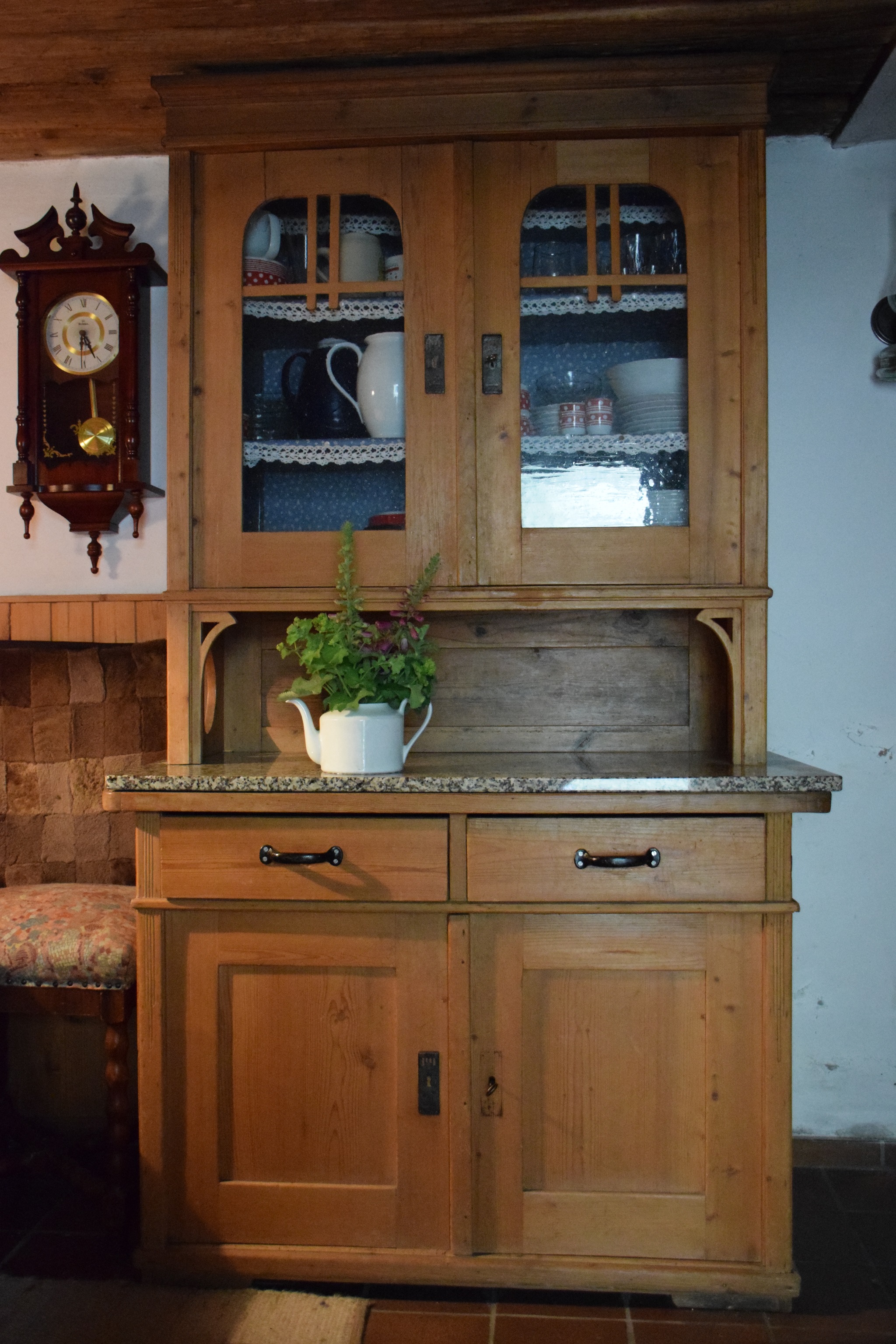 - Paterre: Küchenzeile, Essecke, Kachelofen mit Holzfeuerung, Fernseher