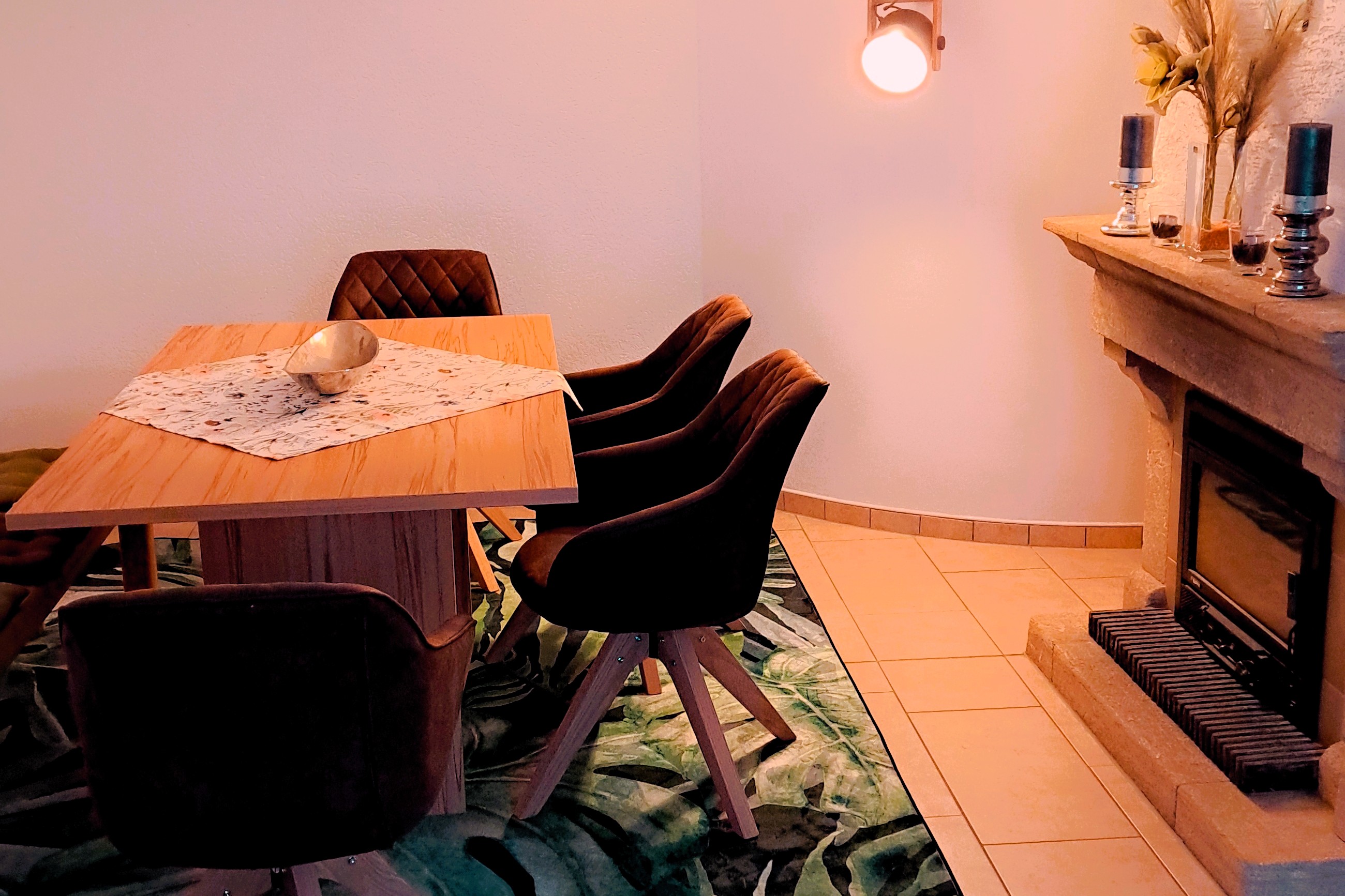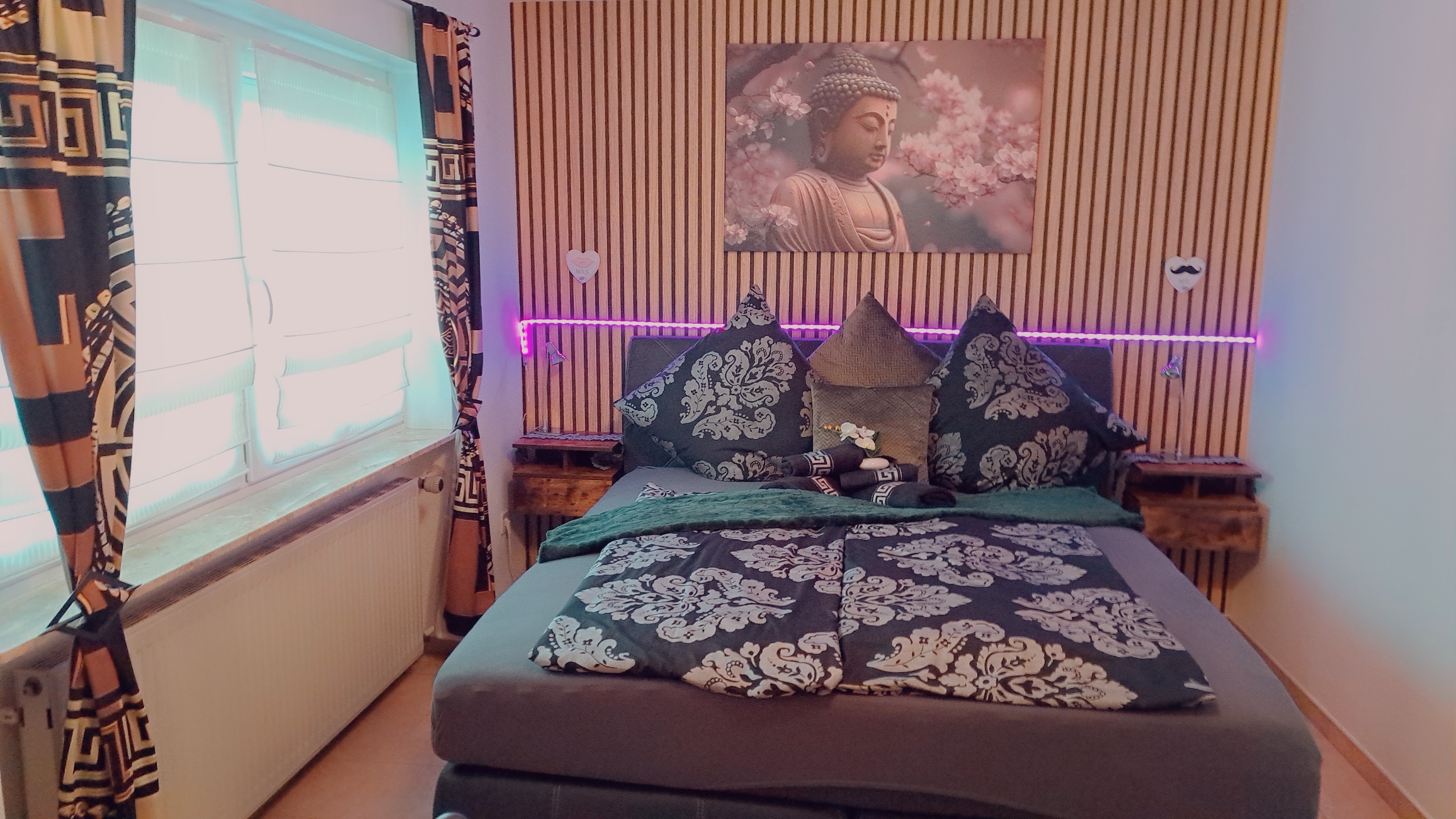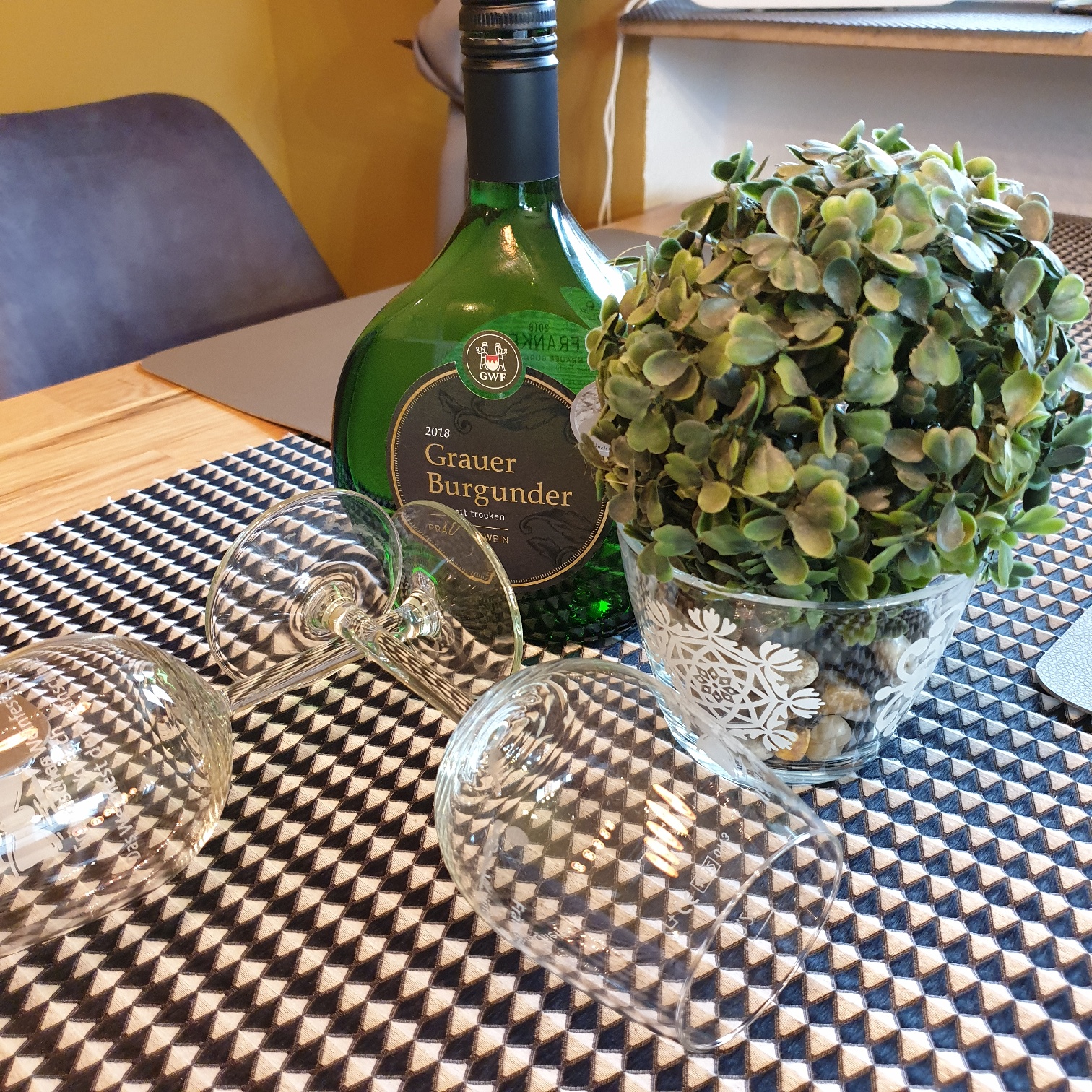 Freuen Sie sich auf eine gemütliche moderne neue Ferienwohnung in der herrlichen Weingegend in Volkach am Main. Für Ihren Aufenthalt haben Sie bei uns Ihr kleines Zuhause um sich während Ihrer Ferientage rundum wohl zu fühlen. Klicken Sie sich durch die Bilder und werden Sie schon ein wenig vertraut mit den Reizen, die unsere Ferienwohnung und die Volkacher Mainschleife zu bieten haben. Handtücher sind vorhanden und die Betten bereits für Sie bezogen. Das erste Schlafzimmer ist mit hochwertigem bequemen Boxspringbett ausgestattet. Im selben Raum befindet sich noch 1 Einzelbett mit den Maßen 90x200cm. Das zweite Schlafzimmer ist mit 2 getrennten Einzelbetten ausgestattet. Außerdem erhalten Sie auf Wunsch zusätzliche Decken und Kopfkissen. Zudem erwartet Sie eine moderne Wohnlandschaft mit Blick auf dem Flachbildfernseher in 81 Diagonale, auf Wunsch auch als Schlafplatz umbaubar. Das Esszimmer bietet Platz für 6 Personen mit direktem Zugang zum Wintergarten. Die Küche ist komplett ausgestattet mit Kaffeemaschine, großem Kühlschrank, einem Eierkocher, einem Mixer und einem Herd mit Backofen und Ceranfeld ausgestattet. Ein Stellplatz und WLAN steht Ihnen vor Ort zur Verfügung.
