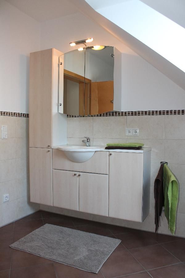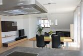 Unsere Wohnung mit 75 m² bietet im 1. Stock Platz für 2-3 Personen. Das gemütliche, moderne Wohn- Esszimmer mit Schlafcouch und Flachbild-TV lädt zum verweilen ein. Die komplett ausgestattete Küche mit Geschirrspüler, Herd, Backofen, Kühlschrank, Wasserkocher, Toaster und Kaffeemaschine lässt keine Wünsche offen. Das Apartment verfügt über 1 Schlafzimmer mit einem großen Doppelbett inklusive Bettwäsche. Das Badezimmer ist mit einer Dusche/WC, Waschschrank mit Föhn und Handtücher ausgestattet.