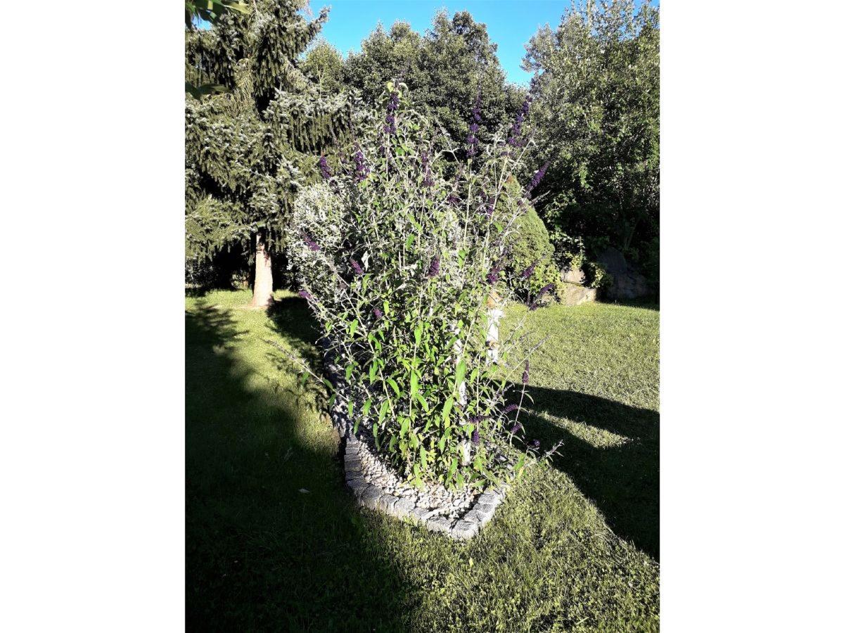 Eine große Terrasse mit Liegewiese und Grillmöglichkeit und ein Parkplatz sind ebenfalls vorhanden.