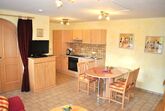 In der reichhaltig ausgestatteten Küche finden Sie Backofen, Mikrowelle, Kühlschrank (mit Gefrierfach), Kaffeemaschine, Wasserkocher, Toaster, etc.