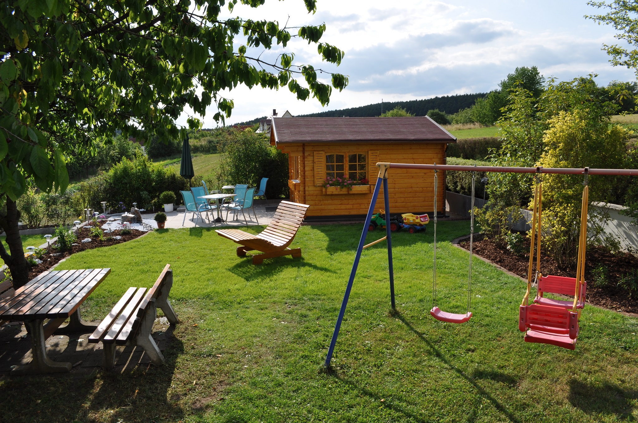 Auch Kinder können sich auf unserem Grundstück wohlfühlen (Spielgeräte, Trettraktor, etc.), während Sie sich im Gartenhaus oder auf der Liegewiese entspannen.