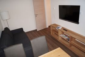 Ausstattung: 1 Schlafzimmer, 1 Wohn-Esszimmer und voll ausgestatteter Küche, Balkon