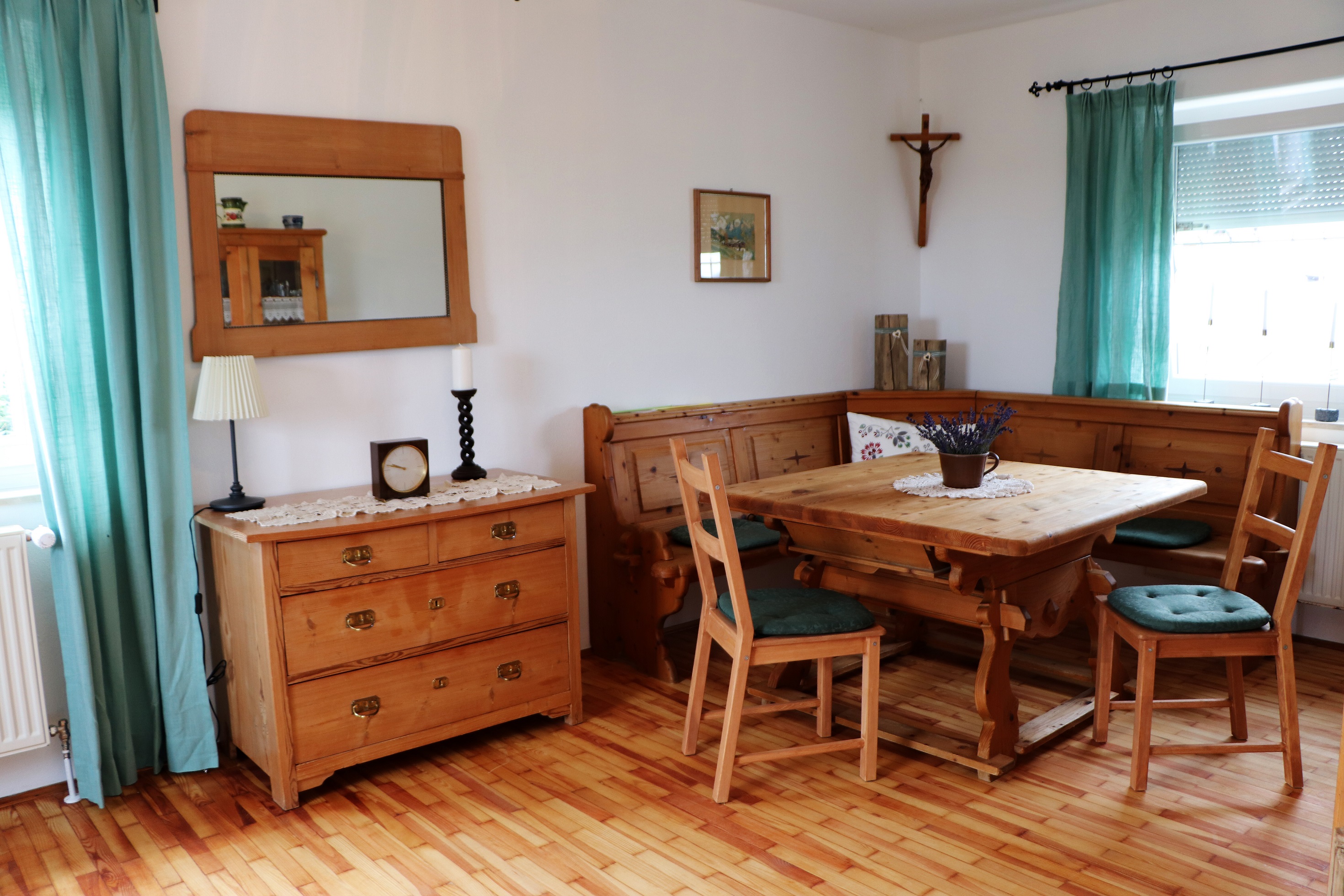 Die gemütlichen Wohnräume liegen Parterre und sind über wenige Eingansstufen erreichbar. Das 80qm große Fuchsheisl verfügt über 2 Schlafzimmer mit Doppel- und Einzelbetten, eine Schlafcouch, ein Tageslichtbad mit Dusche und WC sowie eine gemütliche Essecke. In der separaten, voll eingerichteten Küche stehen Ihnen Toaster, Kaffeemaschine und Backofen zur Verfügung. Im Wohnbereich gibt es Satelliten-TV.