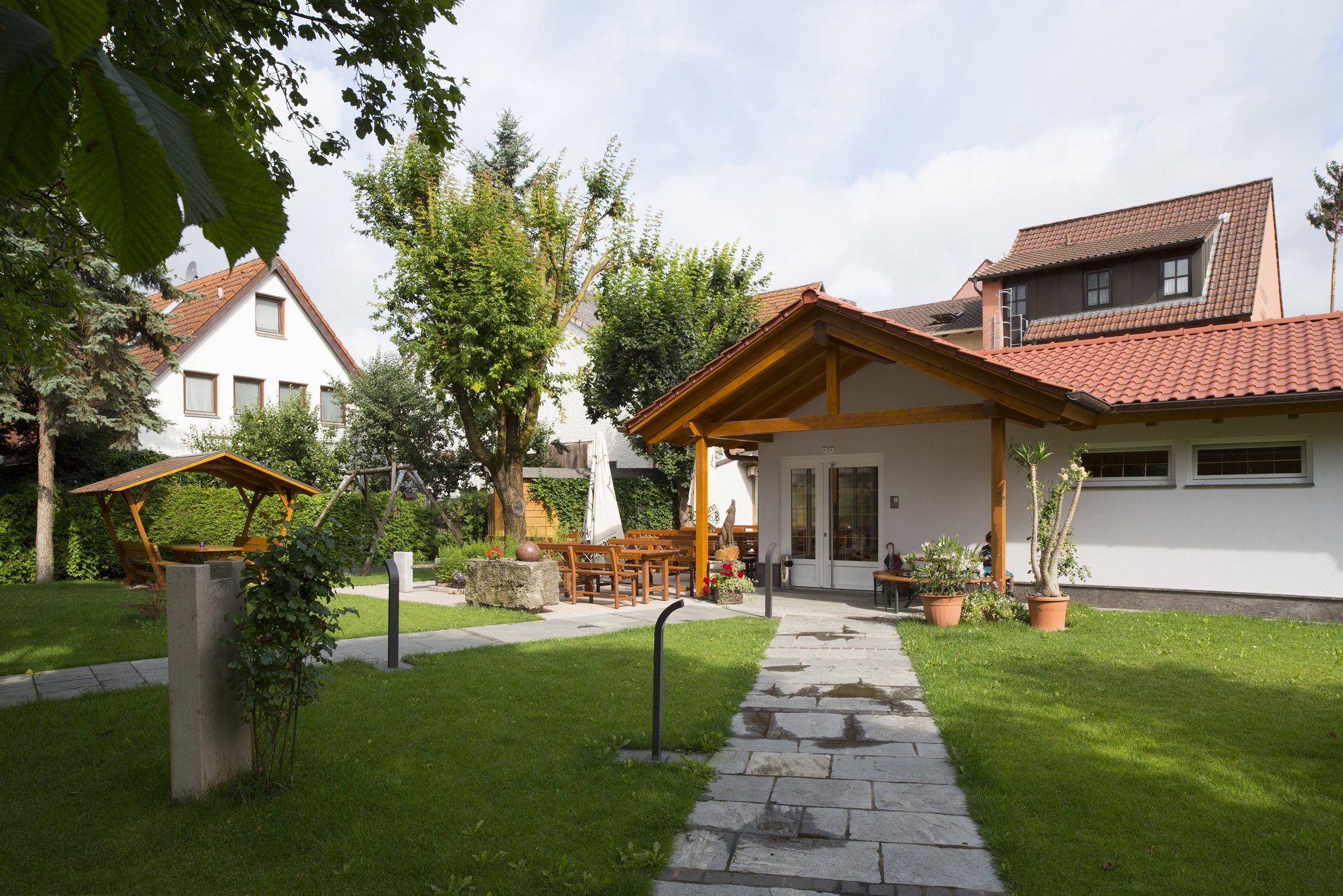 Für Ihr leibliches Wohl bieten wir Ihnen eine Gaststube mit Wintergarten. Für die warmen Tage stehen ebenfalls Plätze draußen in unserem Garten bereit. Freuen sie sich auf einen köstlichen Frankenwein oder ein Frischgezapftes!