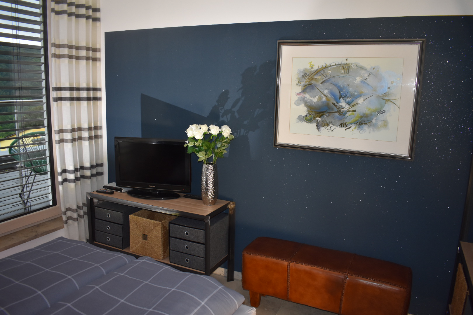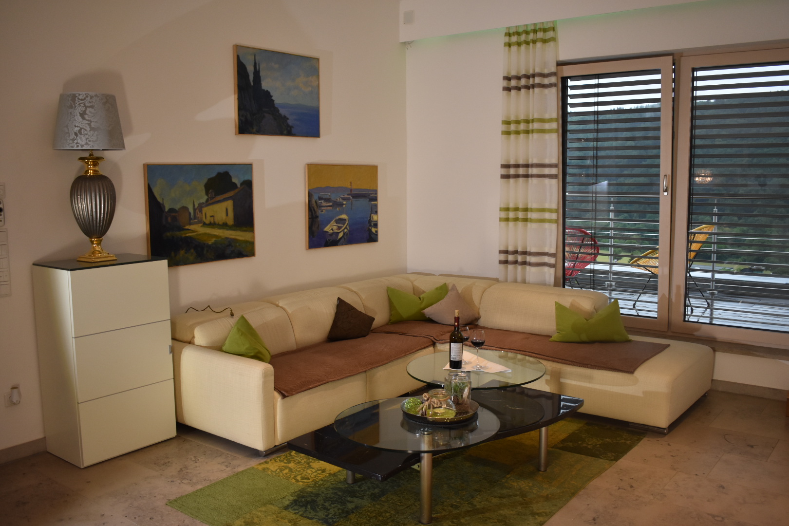 NEU ab Juli 2020!Die neue, sehr großzügige und komfortable Ferienwohnung mit ca. 85qm verfügt über zwei Terrassen von ca. 30qm und ca. 12qm. Die beiden Schlafzimmer sind mit komfortablen Polsterbetten ausgestattet Die Betten haben eine Breite von 180cm und 140cm. Der Wohnbereich ist offen gestaltet mit Küche, Essplatz für 4 Personen und dem Wohnbereich mit großzügiger Couch. Alle Zimmer sind nach Süden gerichtet und haben Zugang zur großen Panoramaterrasse mit Sonnenmarkise. Für Ihre Unterhaltung sorgt DAB-Radio, Flat-Screen TV 55, Sat-Anlage und W-LAN. Die hochwertige Küche verfügt über Induktionskochfeld, Geschirrspüler, Backofen, Kühl-und Gefrierschrank, Microwelle, Kaffeemaschine, Toaster und Eierkocher.