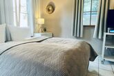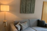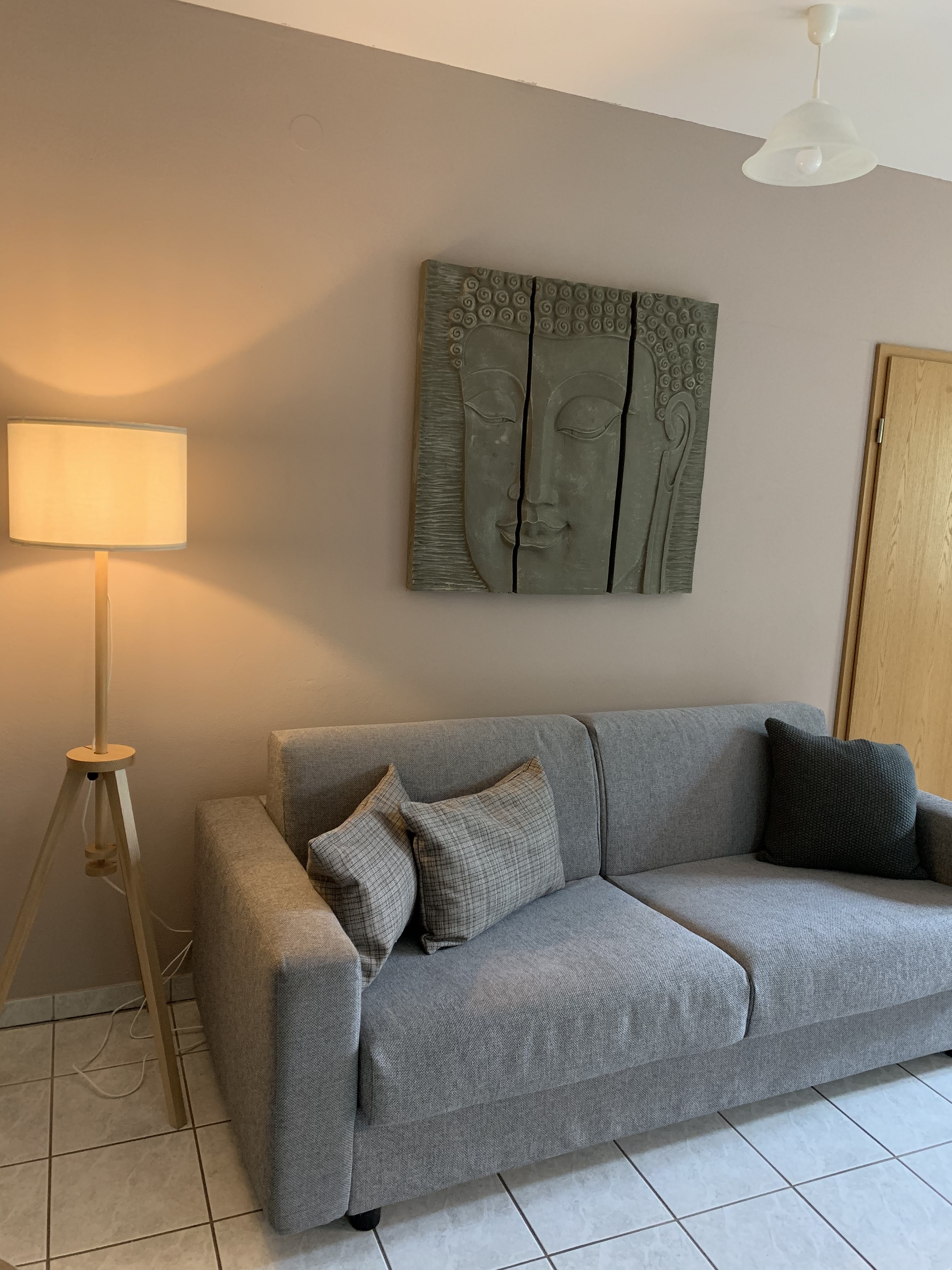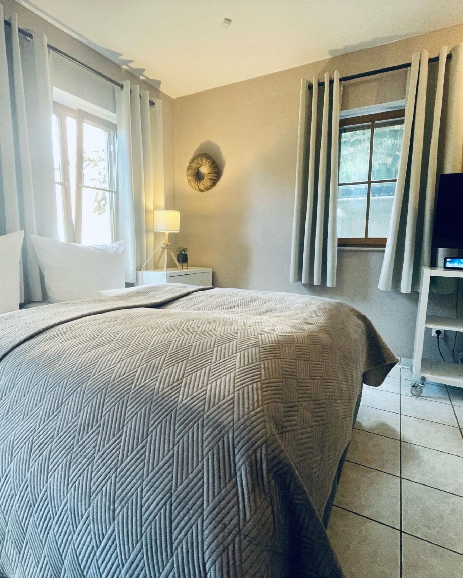 Das Apartment verfügt über ein gemütliches Boxspringbett, eine komfortable Couch und ein modernes Bad mit einer begehbaren Dusche und WC.