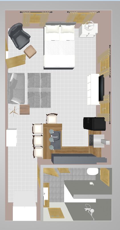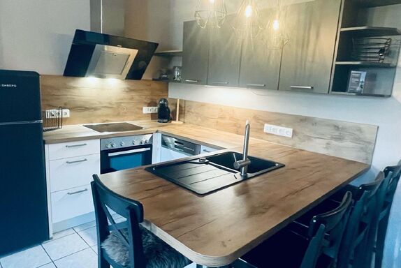 Mit rund 40 m² bietet dieses Apartment Platz für bis zu 4 Personen. Ein herausragendes Merkmal ist die großzügige Küche, die ideal für gemütliche Mahlzeiten zu zweit oder mit der Familie geeignet ist.