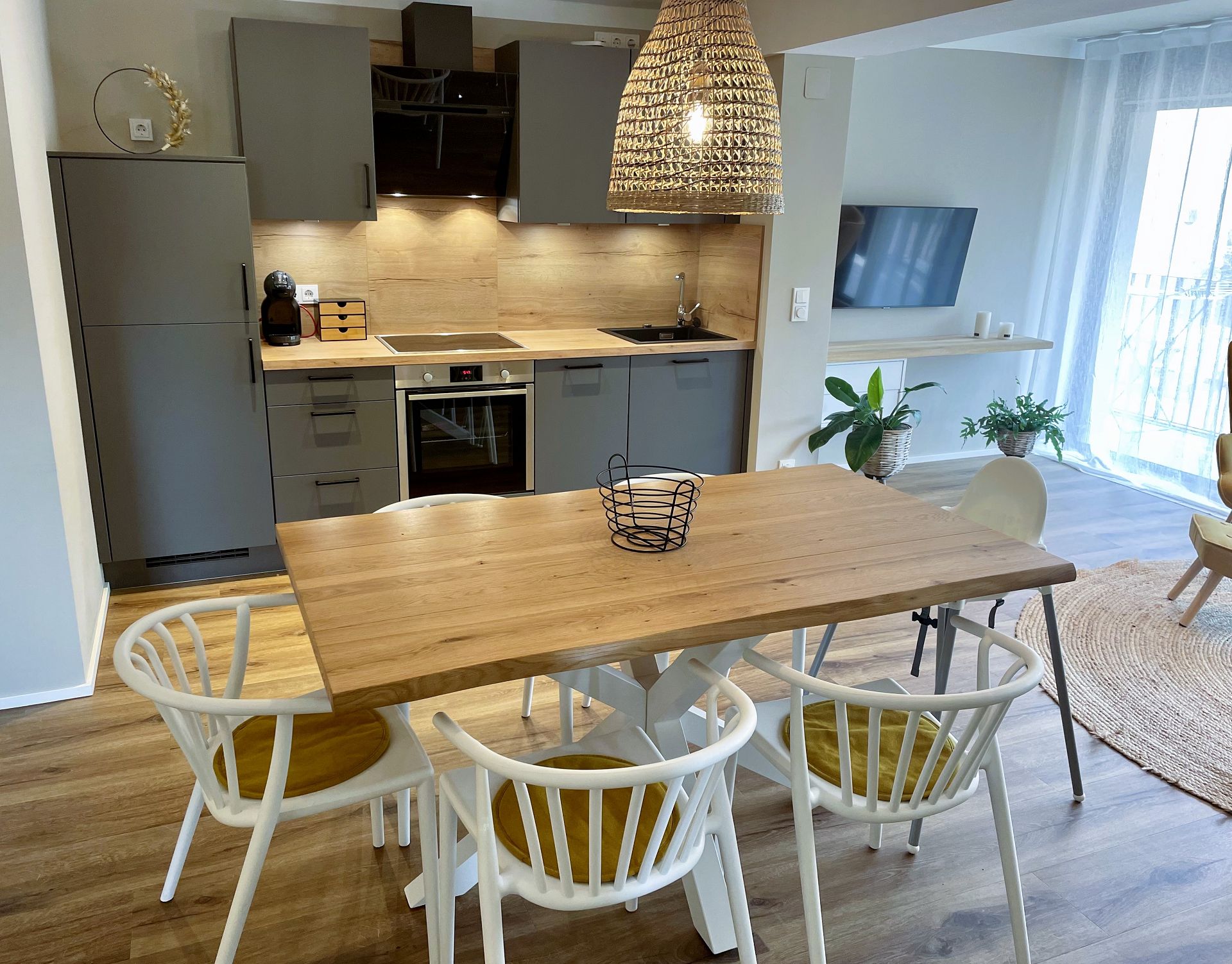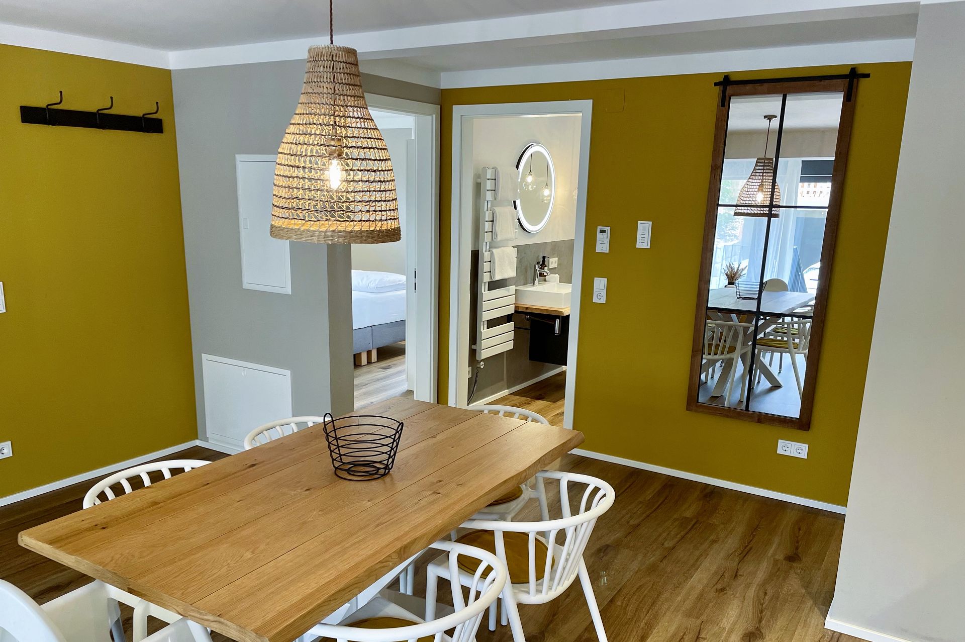 Servus und Hallo in unserer fewo4! Diese Wohnung liegt im Innenhof und besticht durch ihren großartigen Ausblick auf den Innenhof und Garten durch eine bodentiefe Glasfront im Wohnbereich.