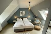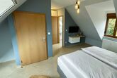 Im Schlafzimmer im Erdgeschoss findet ihr ein gemütliches Boxspringbett und ein modernes Schrankbett. Das Schlafzimmer im Obergeschoss verfügt neben einem weiteren Boxspringbett auch über ein eigenes angrenzendes WC.