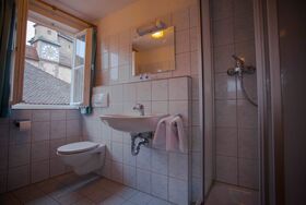 Das Doppelzimmer Komfort ist ein Zweibettzimmer mit Doppelbett, Bad, Fernseher, Scheibtisch und Sitzmöglichkeit. Das Badezimmer ist mit Dusche und WC ausgestattet. Das Frühstück ist im Preis inbegriffen. Haustiere sind nicht erwünscht.