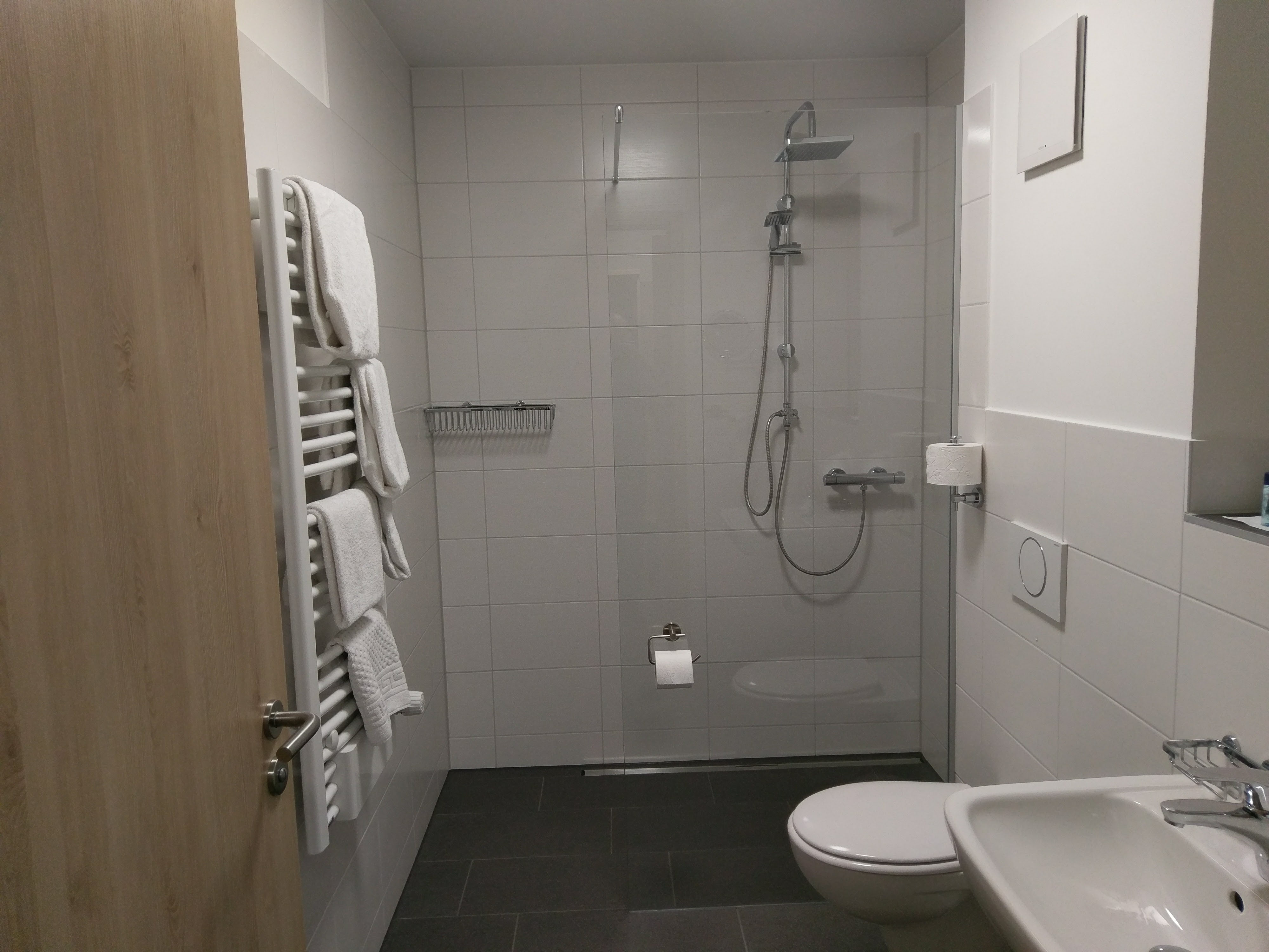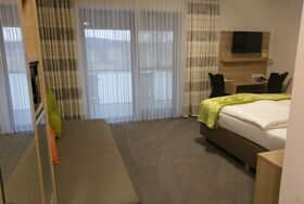 Unser Komfort-Familienzimmer ist ländlich-modern eingerichtet. Es besteht aus 2 Schlafzimmern und 2 Bädern. Es verfügt über einen Balkon und ein modernes Bad mit ebenerdiger Regendusche, WC, Waschbecken und Kosmetikartikel. Im Zimmer vorhanden sind außerdem ein Flachbild-Fernseher mit SAT-Empfang inkl. Sky und freies WLAN. Zusätzlich bieten wir Ihnen Parkplätze direkt vor dem Haus und freien Eintritt im anliegenden Freibad während der Badesaison (bei schönem Wetter).