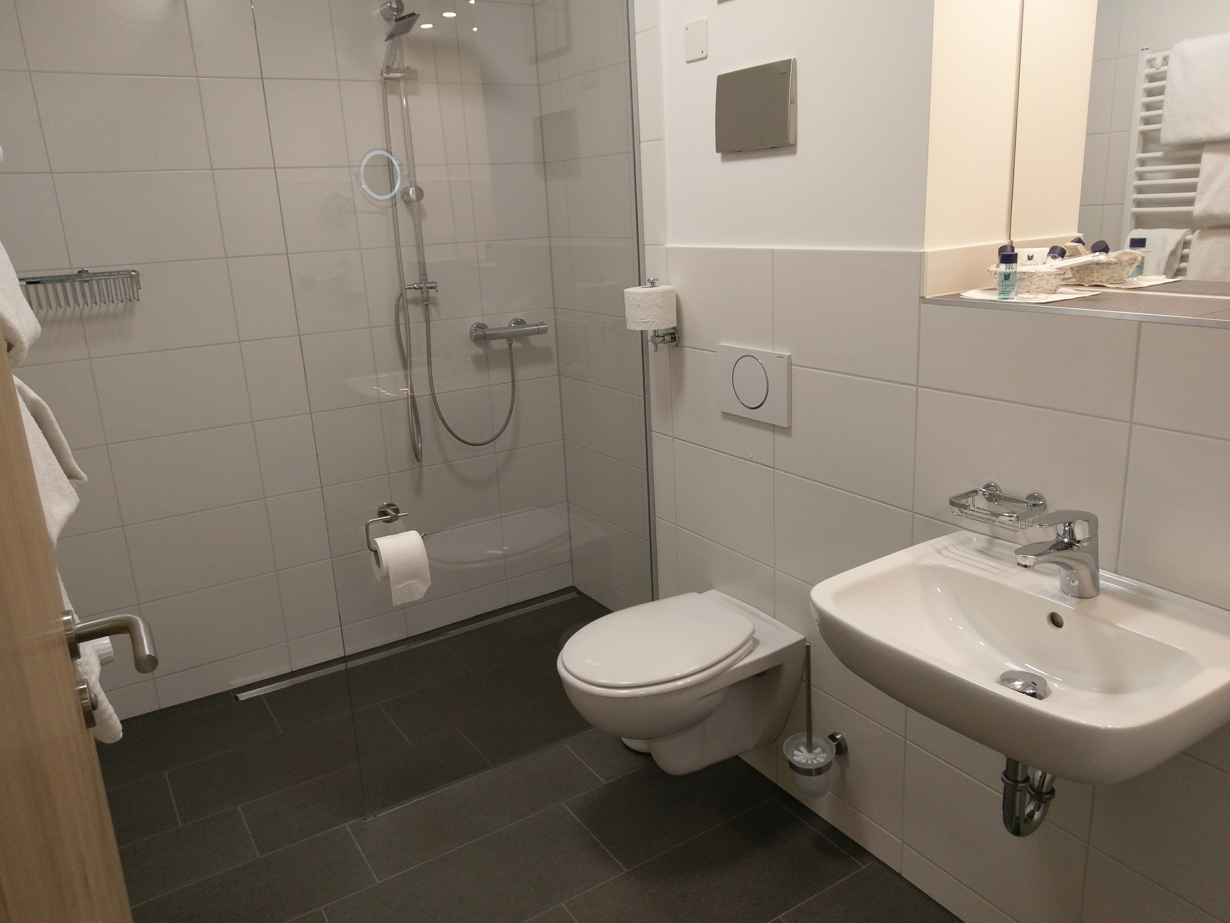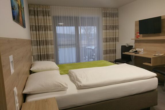 Unser Komfort-Doppelzimmer ist ländlich-modern eingerichtet. Es besteht aus einem Schlafzimmer und einem Badezimmer. Es verfügt über einen Balkon und ein modernes Bad mit ebenerdiger Regendusche, WC, Waschbecken und Kosmetikartikel. Im Zimmer vorhanden sind außerdem ein Flachbild-Fernseher mit SAT-Empfang inkl. Sky und freies WLAN. Zusätzlich bieten wir Ihnen Parkplätze direkt vor dem Haus und freien Eintritt im anliegenden Freibad während der Badesaison (bei schönem Wetter). Die Rezeption ist von 6:30 Uhr bis 11:00 Uhr (Samstag und Sonntag ab 8 Uhr) und 15:30 bis 21:00 Uhr besetzt.