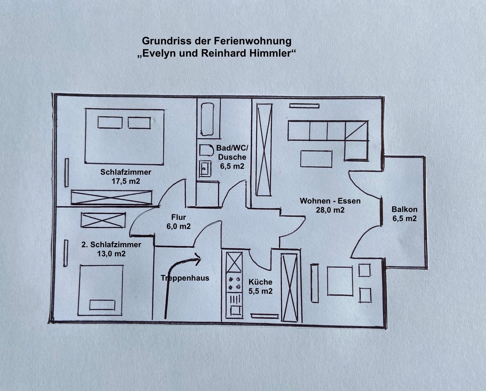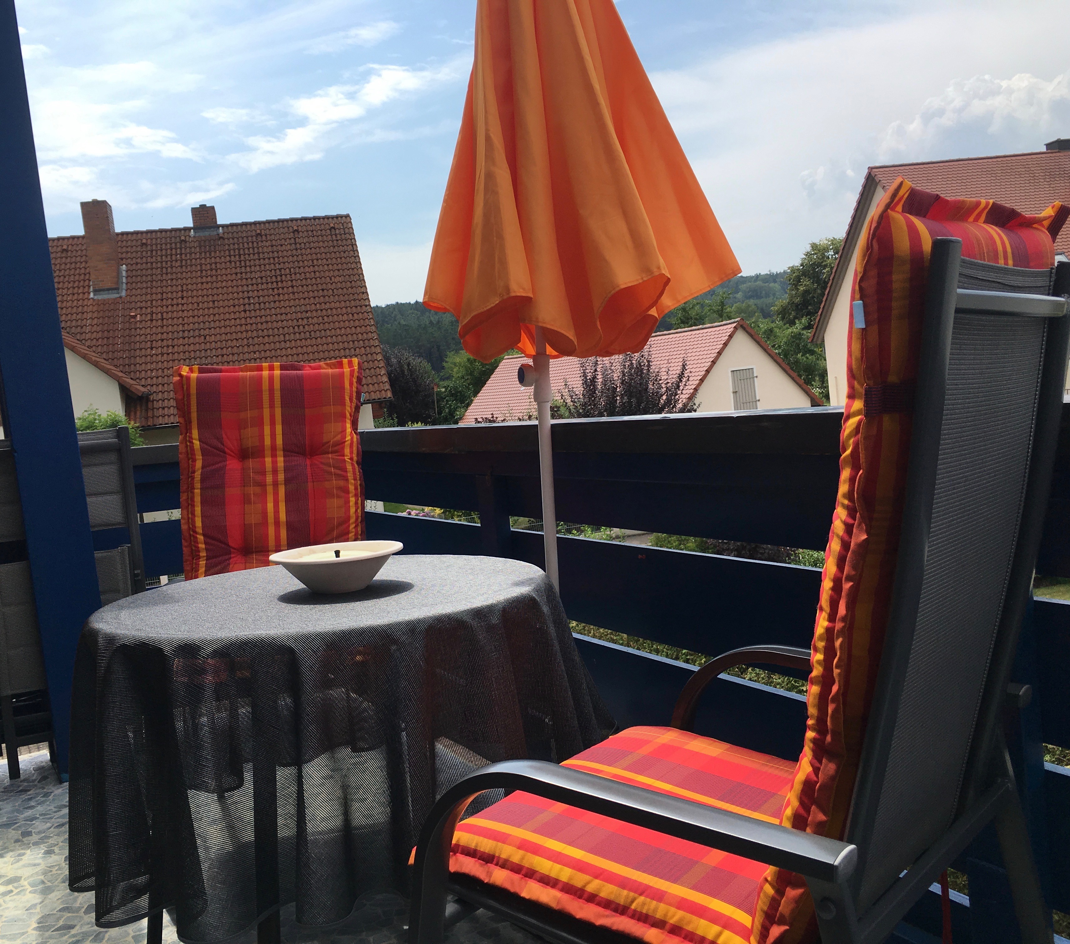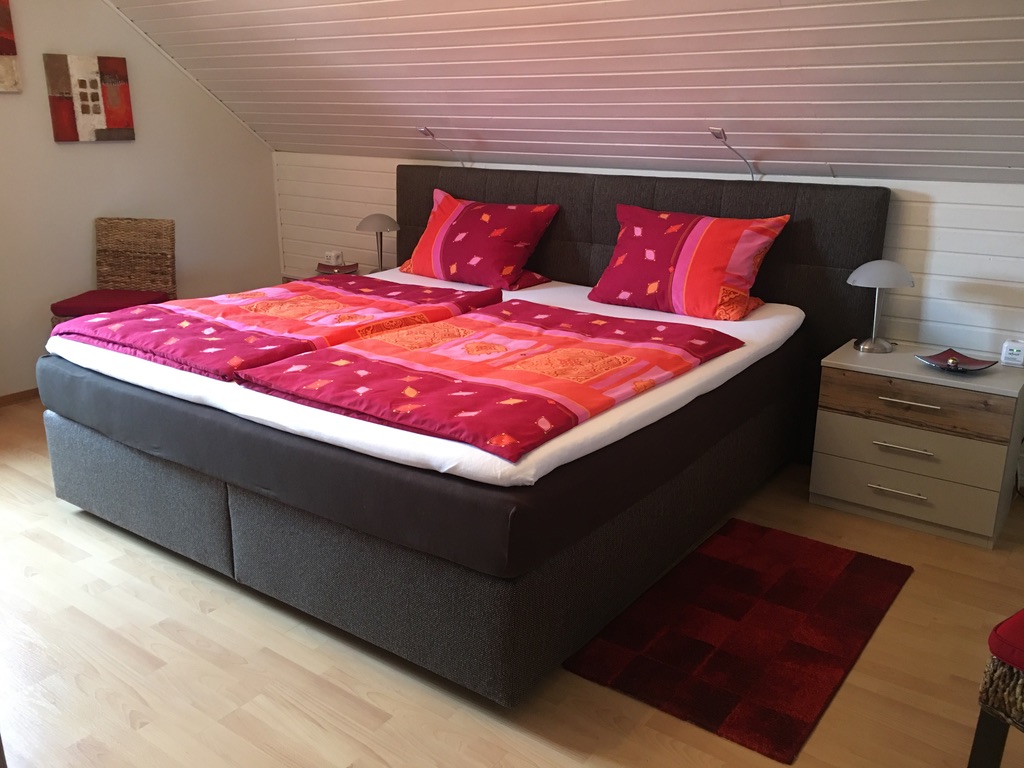 Bei Ihrer Ankunft erwartet Sie im Kühlschrank ein Willkommensgruß (1 Fl. Sekt und 1 Glas hausgemachte Marmelade).Ausstattung:1 Schlafzimmer mit Boxspringbett (Kingsize-Größe 2,00 x 2,00m)1 Schlafzimmer mit Einzelbett (1,40 x 2,00m) - alle Betten haben eine Höhe von 55 cm! 1 Bad mit Badewanne und Dusche, WC, Wohnzimmer mit bequemer Sitzecke und Sessel, Flachbild-TV, Kaminofen incl. ein separater Eßplatz mit Drehstühlen, 1 Balkon mit Gartenmöbel und Sonnenschirm dekoriert, vollausgestattet Küche, damit Sie Ihren Liebsten verwöhnen können :-) 1 Freisitz mit Gartenmöbel laden Sie ein für schattige Stunden. Selbstverständlich werden Ihnen Hand- und Duschtücher sowie Bettwäsche gestellt. Zur Sicherheit Ihrer Unterlagen ist ein abschließbarer Safe installiert. Folgende Angebote haben wir für Sie arrangiert: Brötchen- und Getränkeservice, Parkplatz vor dem Haus. WLAN kostenfrei in allen Räumen.Grillmöglichkeit im Freien möglichWaschmaschinen- und Trocknernutzung gegen GebührBügeleisen und Bügelbrett vorhandenBrettspiele und BibliothekE-Bike LademöglichkeitReinigungsservice während des Aufenthaltes gegen Gebühr